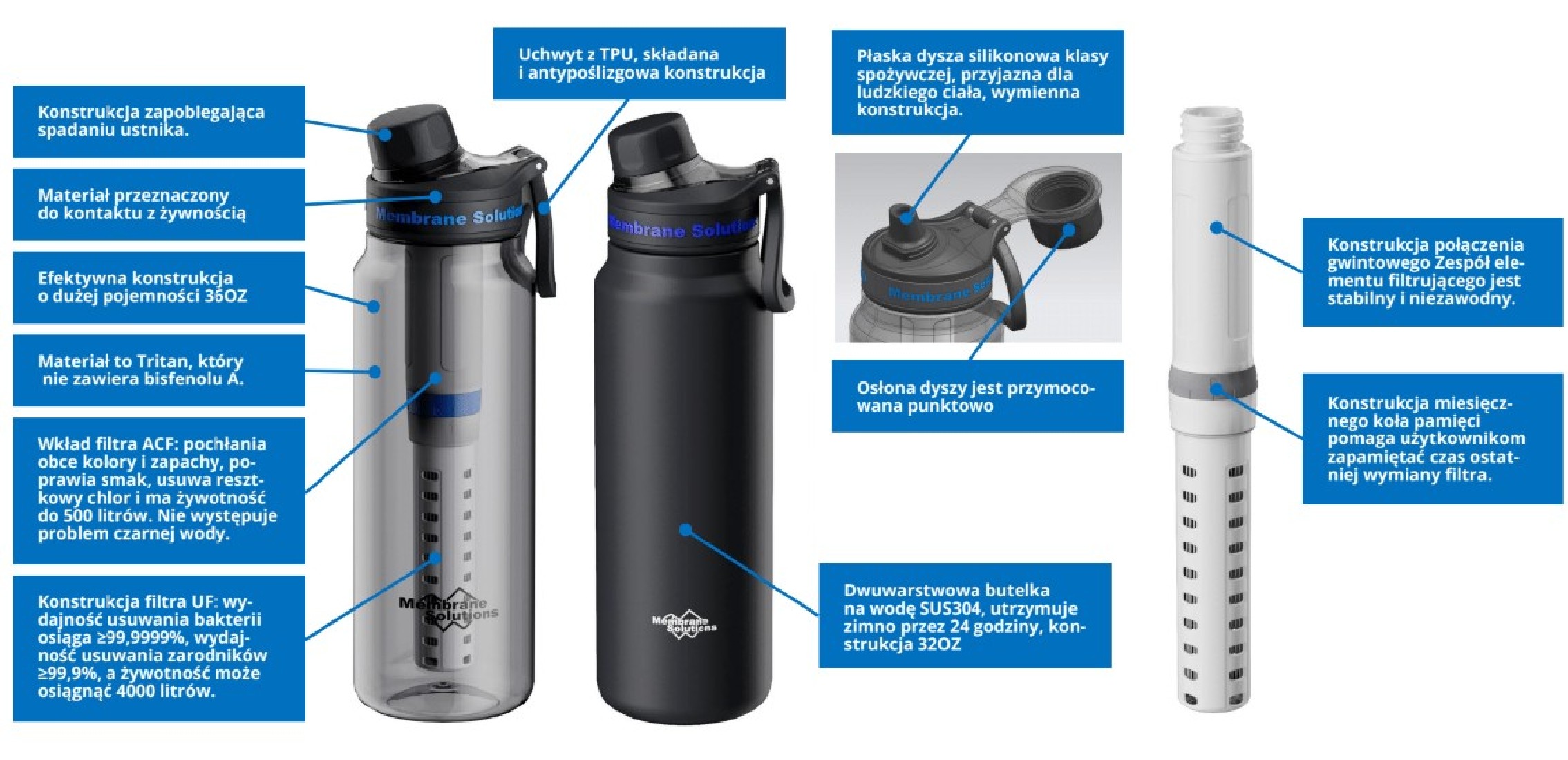 Butelka Membrane Solutions C3 to idealne rozwiązanie dla podróżników, miłośników trekkingu, bushcraftu i wszystkich, którzy potrzebują bezpiecznego dostępu do wody w każdych warunkach. Dzięki solidnej konstrukcji i zaawansowanej filtracji jest niezastąpionym elementem wyposażenia w terenie i podczas długich wypraw.