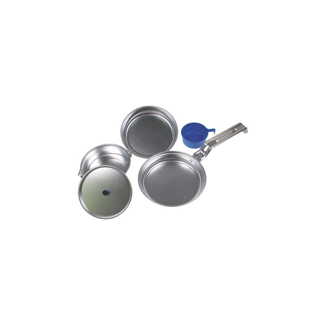 W skład zestawu wchodzi kubek, miska, patelnia oraz dwa garnki o pojemności 350 i 500 ml.