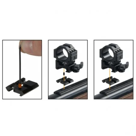 Adapter/przejściówka Leapers umożliwia szybkie i łatwe dostosowanie montażu weaver/picatinny do szyny 11 mm. Składa się z dwóch oddzielnych części, które należy wpiąć w szynę, którą chcemy przystosować do standardu 11 mm.