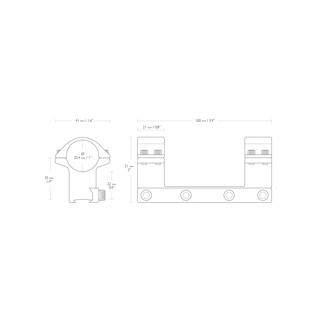 Jednoczęściowy montaż lunety Hawke Match wysoki 1" Dovetail cechy: