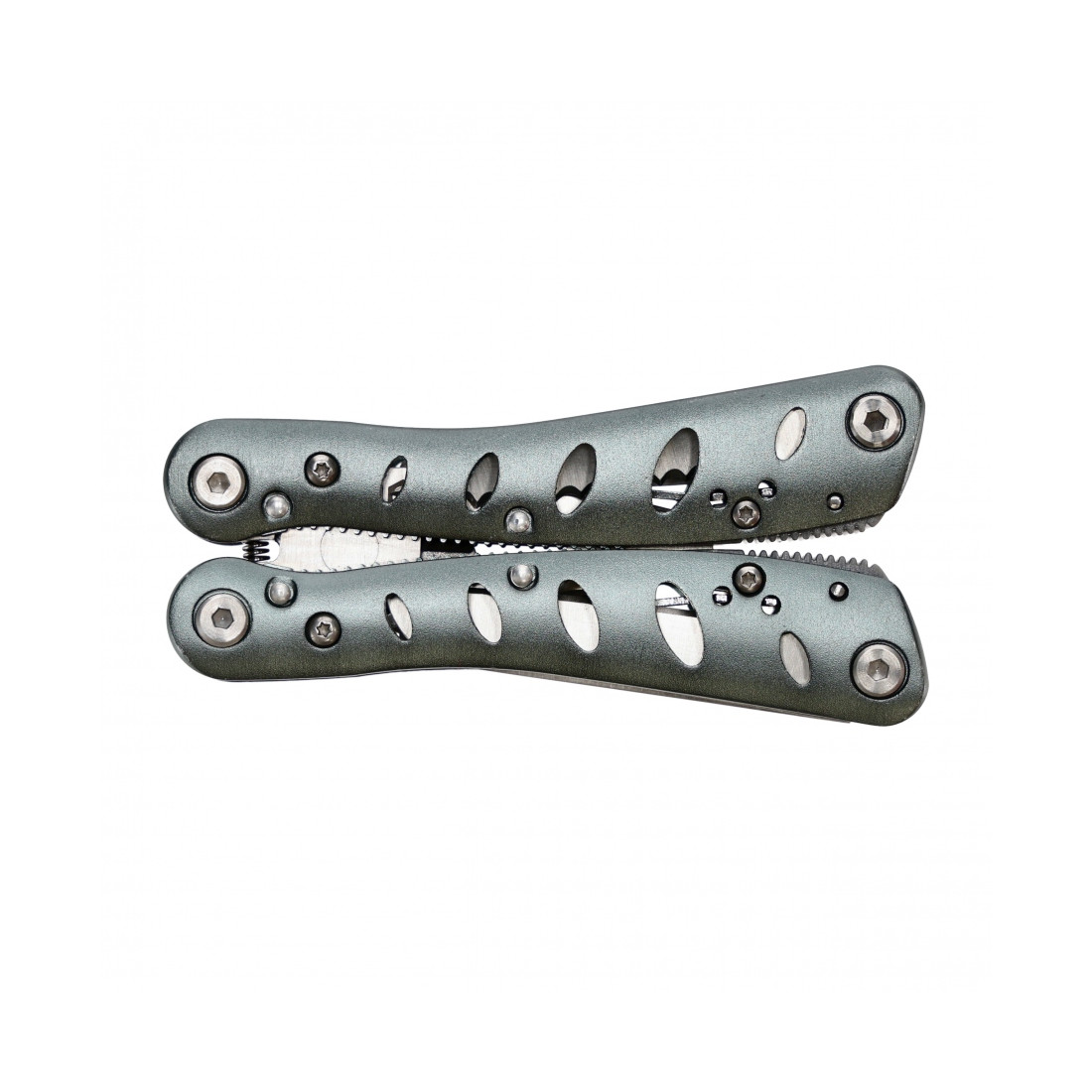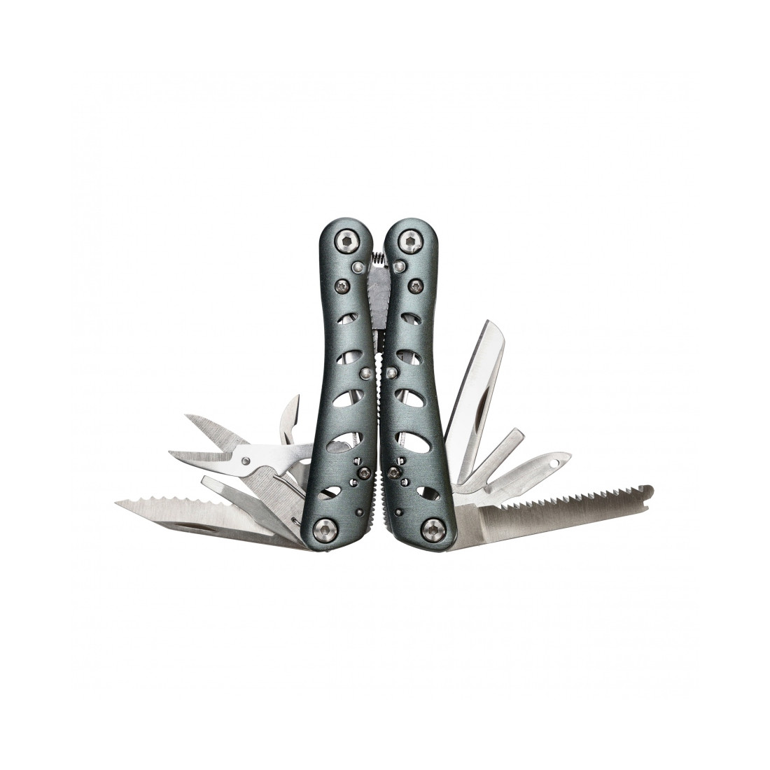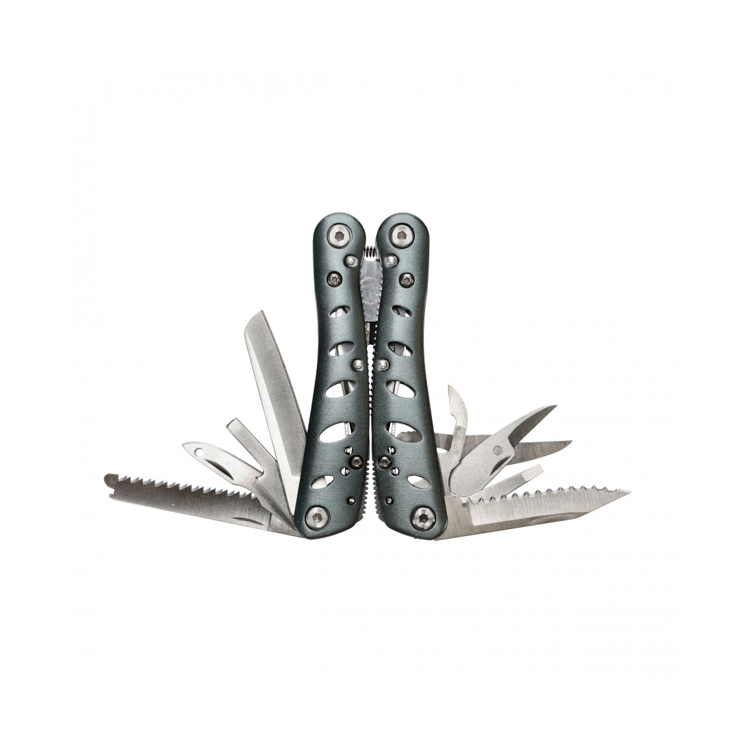 ✅ 14 narzędzi: kombinerki, nożyczki, otwieracze, ostrza, przecinak, szydło, śrubokręt płaski, baza do bitów