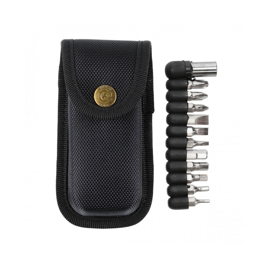 Ganzo G101-H to podręczny zestaw narzędzi, który dzięki dołączonej pochewce z możliwości przypięcia do pasa możemy mieć zawsze przy sobie. Solidnie wykonana konstrukcja rękojeści oraz narzędzia ze stali nierdzewnej zapewniaj długie i bez awaryjne użytkowania zestawu. Pewny chwyt podczas operowania narzędziem umożliwia ergonomiczna rękojeść i jej karbowane brzegi. W komplecie 11 bitów.