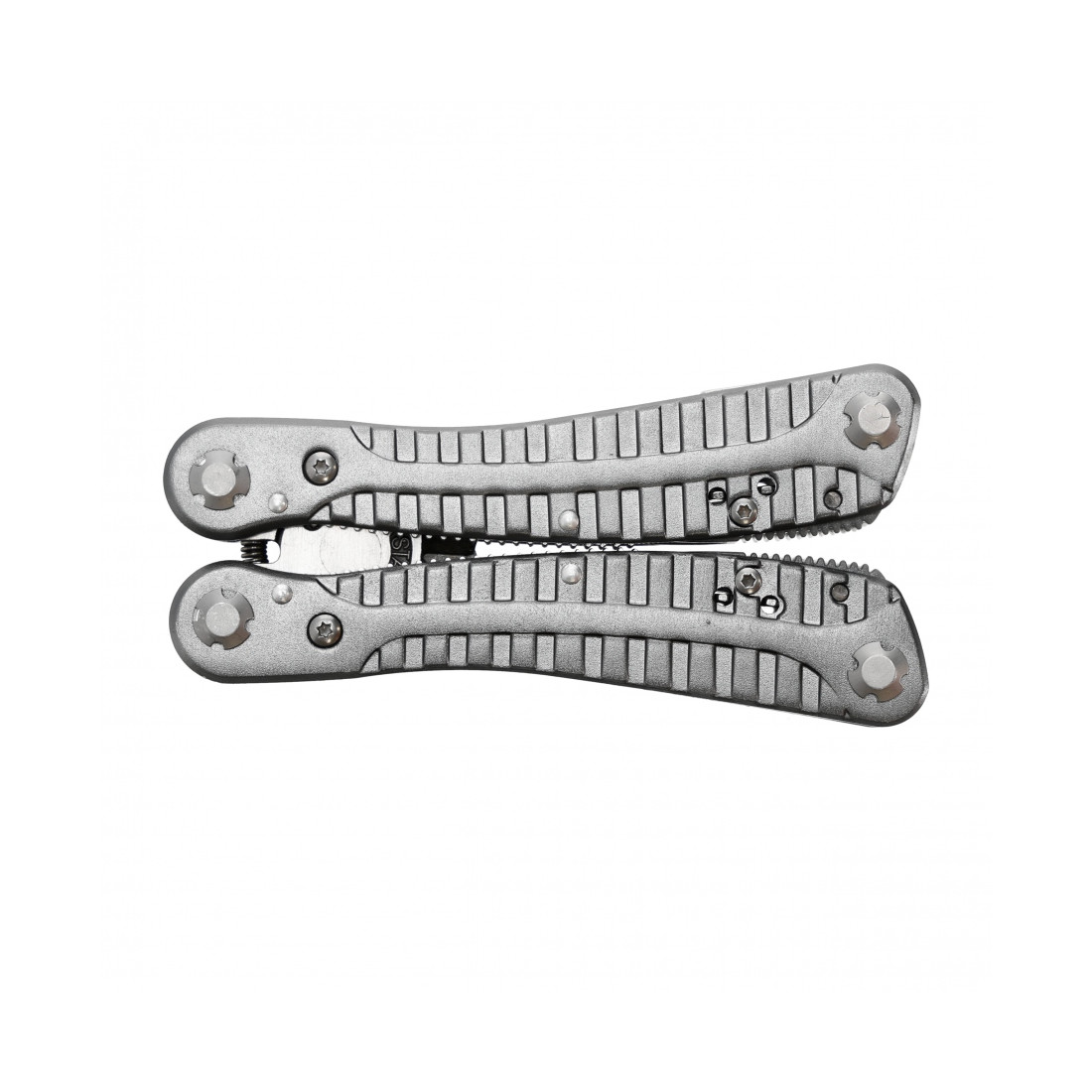 - Wbudowane narzędzia: baza do bitów, kombinerki standardowe, ostrze gładkie, ostrze ząbkowane, pilnik, przebijak, przecinak do drutu, śrubokręt płaski, 5 bitów imbusowych, 3 bity krzyżakowe, 3 bity płaskie