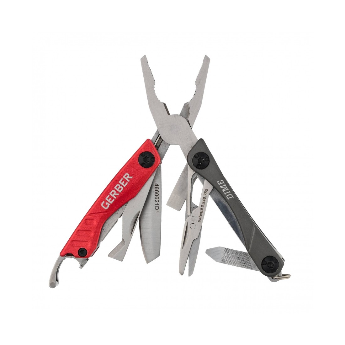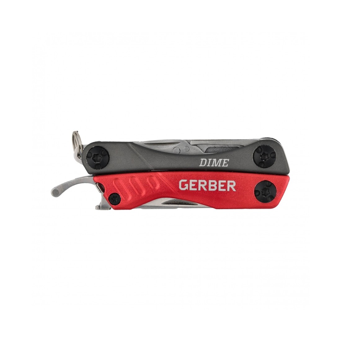 Gerber Dime czerwony to kompaktowy multitool wyposażony w 12 przydatnych narzędzi, który może nam towarzyć w naszej codziennej aktywności. Dime ważący 62 g po złożeniu ma zaledwie 70 mm, dlatego możemy używać go jako breloka do kluczy, który w odpowiednim momencie przyjdzie z pomocą.