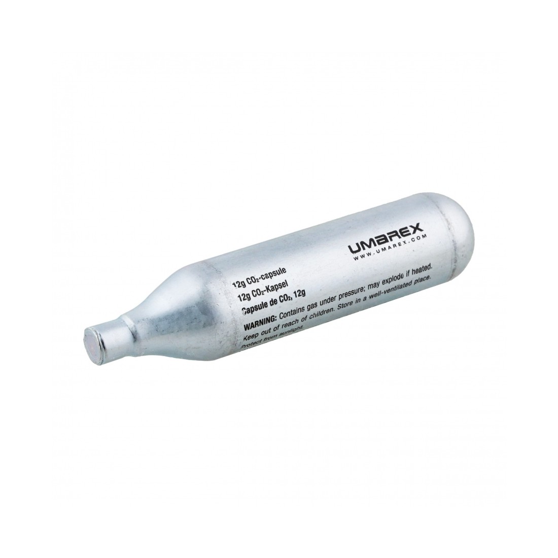 Kapsuła CO2 Umarex o wadze 12 gramów to nabój zawierający sprężony dwutlenek węgla. Jest przeznaczona do zasilania wiatrówek krótkich, długich, markerów RAM oraz replik ASG, kompatybilnych z tą formą zasilania. Pojedyncza kapsuła została wykonana w całości z metalu. Zestaw zawiera 25 sztuk kapsuł.