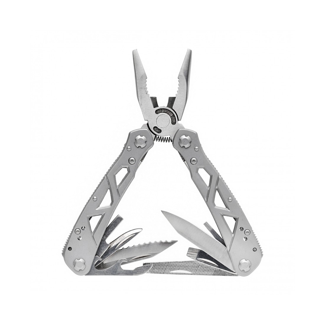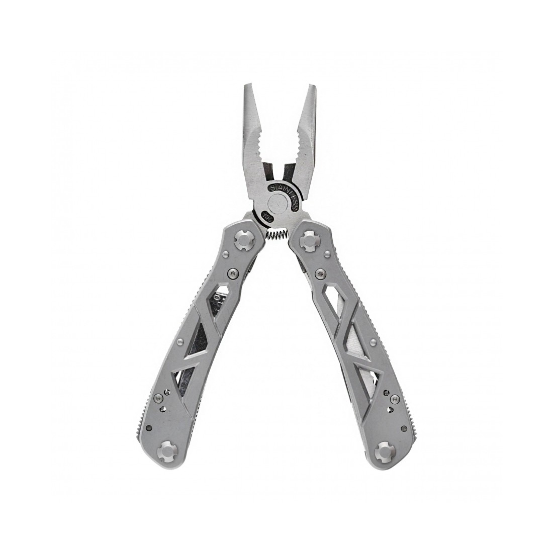 Na pokładzie multitoola Ganzo G112 zaimplementowano aż 25 przydatnych narzędzi, dzięki czemu mamy pod ręką praktyczny niezbędnik, który pozwala na przeprowadzenie wielu drobnych napraw. Dzięki rozmieszczeniu narzędzi na zewnętrznych stronach rękojeści, mamy dostęp do wszystkich funkcji multitoola bez potrzeby rozkładania go. Głównym narzędziem Ganzo G112 są sprężynujące kombinerki, które zapewniają wygodną i sprawną pracę.