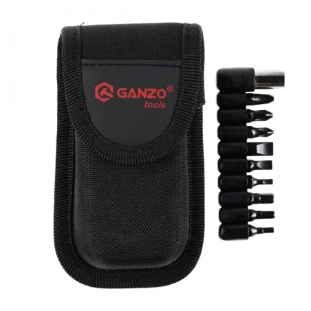 Multitool poza zintegrowanymi narzędziami ma także zestaw 11 wymiennych bitów montowanych na rozkładanym trzpieniu za pomocą magnetycznego adaptera. Poręczna wielkość (105 mm po złożeniu) oraz ciężar akceptowalny ciężar 206 g, sprawiają, że multitool Ganzo G112 może nam towarzyszyć podczas codziennej aktywności. Do wygodnego przenoszenia multitoola i bitów na pasie otrzymujemy nylonowy pokrowiec zapinany na napę.