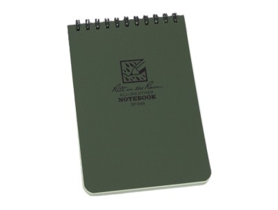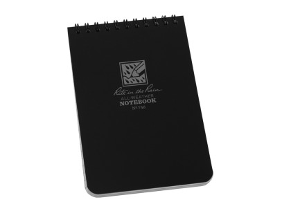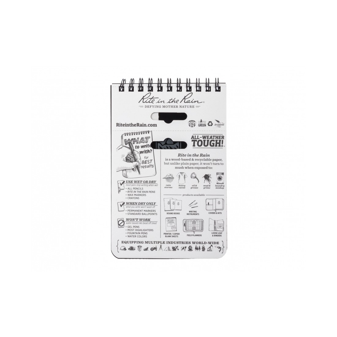 Notesy Rite in the Rain rozwiązują problem przemoczonych i nieczytelnych notatek. Opatentowany, ekologiczny papier pozwala na zapisanie i bezproblemowe odczytanie informacji podczas ulewy, śnieżycy oraz pod wodą. Wodoodporne notesy amerykańskiej marki Rite in the Rain są używana na całym świecie, począwszy od pustyni aż po tropikalne lasy deszczowe. Niewielkie rozmiary, zaokrąglone rogi, twarda nylonowa okładka i solidna stalowa spirala zapewniają wygodę przenoszenia oraz trwałość naszych notatek.