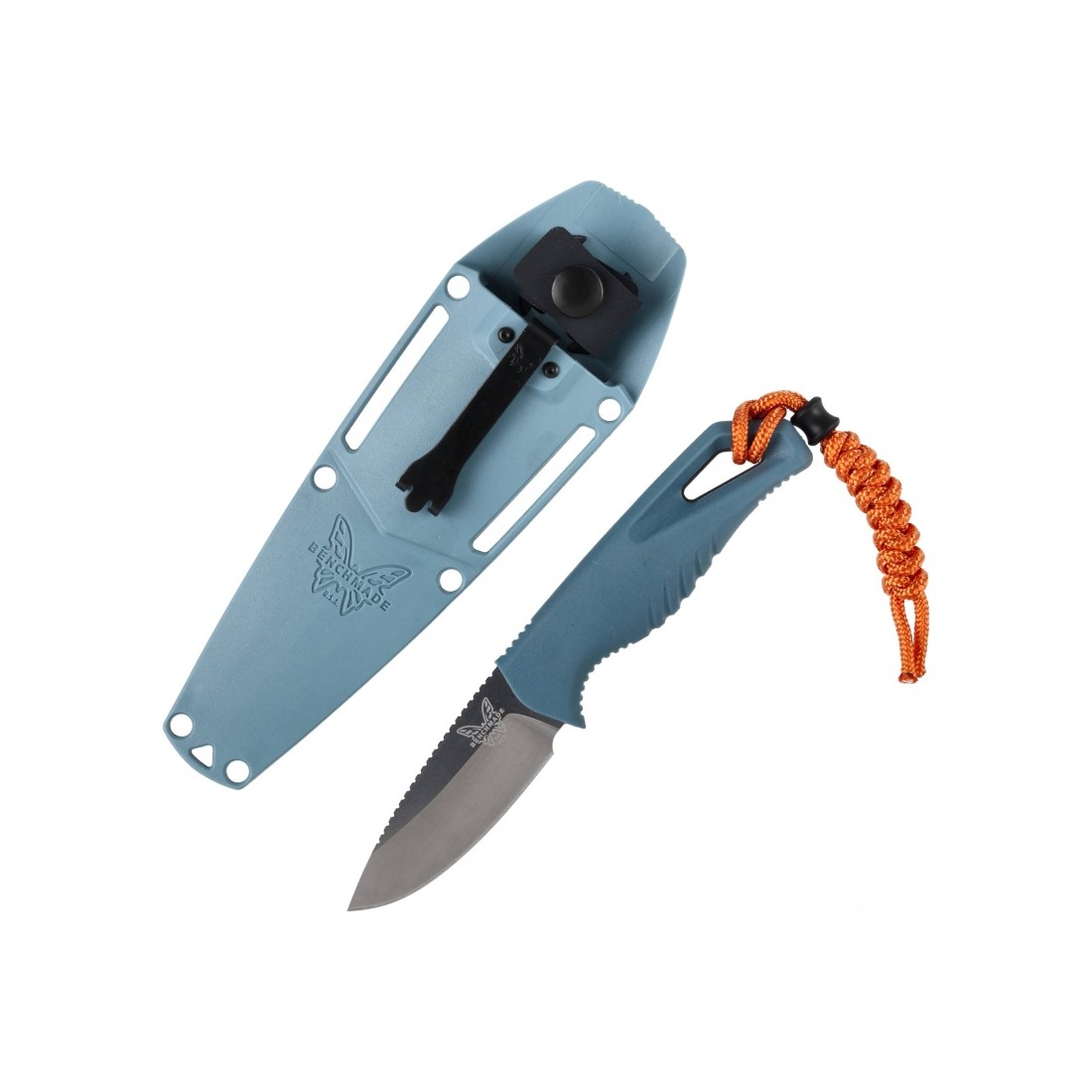 Do noża dołączono lekką, wtryskową pochewkę z tworzywa sztucznego o wysokiej odporności na uszkodzenia i warunki atmosferyczne. Pochewka posiada klips mocujący, dzięki któremu nóż można wygodnie nosić przy pasku, plecaku czy w kieszeni.
