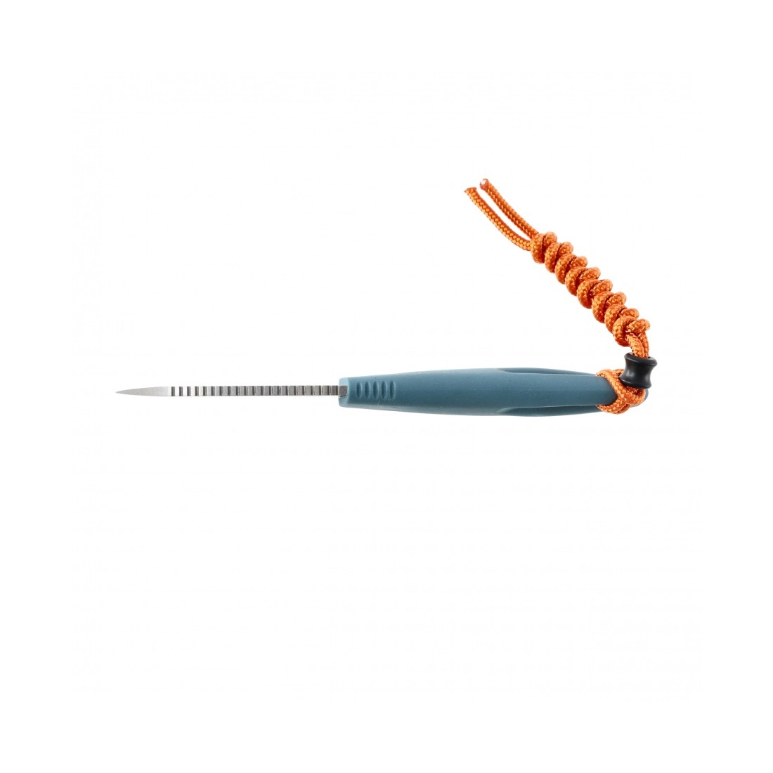 W tylnej części ergonomicznie profilowanej rękojeści umieszczono otwór przeznaczony do mocowania linki lub paracordu, dzięki którym zabezpieczymy nóż przed przypadkowym zgubieniem, będąc np. na łódce.