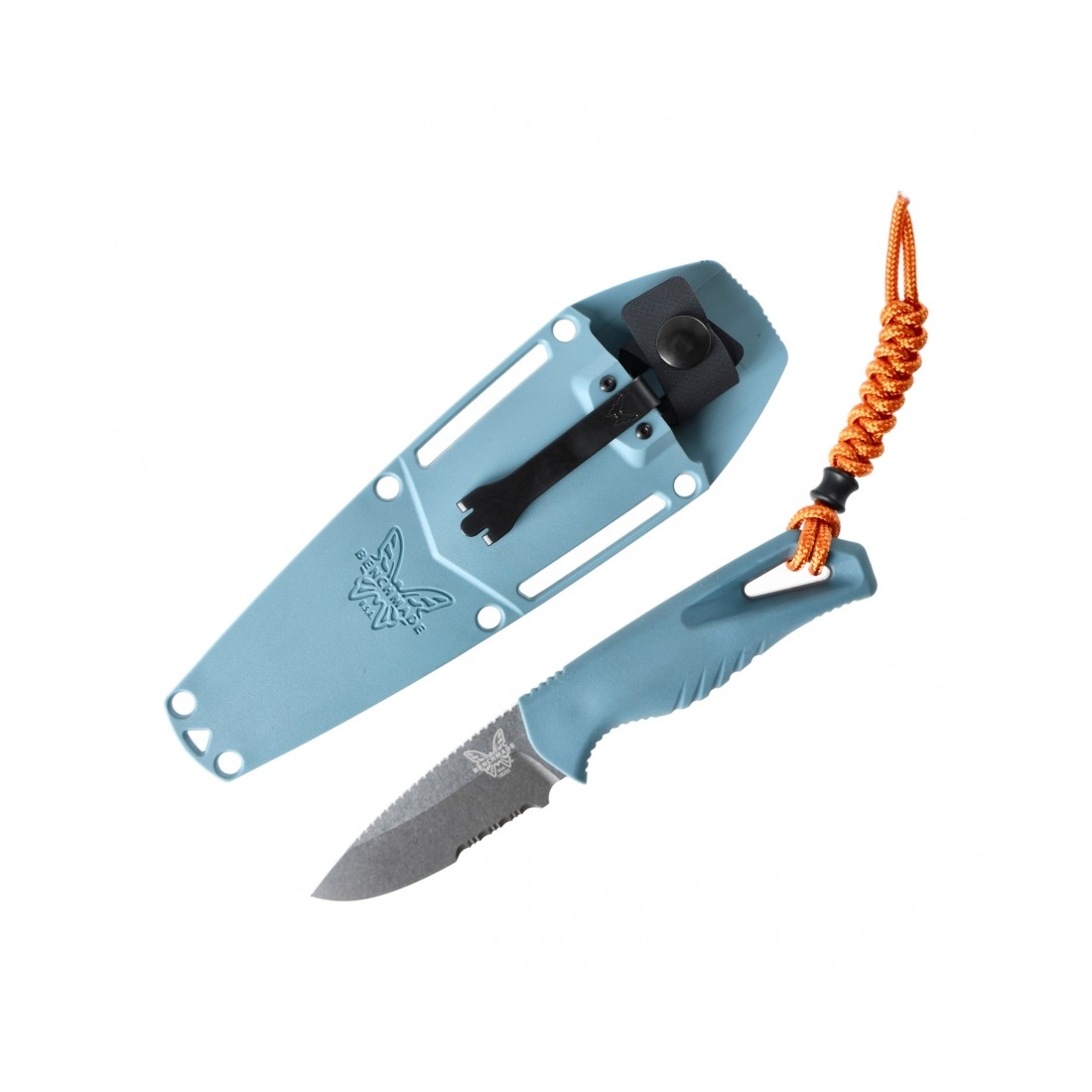 Do bezpiecznego przenoszenia noża służy pochewka formowana wtryskowo z termoplastycznego tworzywa o wysokiej odporności na uszkodzenia, temperaturę i wilgoć. Pochewkę wyposażono w specjalny klips mocujący, który ułatwia troczenie noża w pochewce do kieszeni, pasów, plecaków i innych elementów wyposażenia turystycznego.