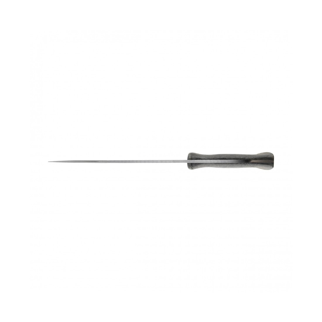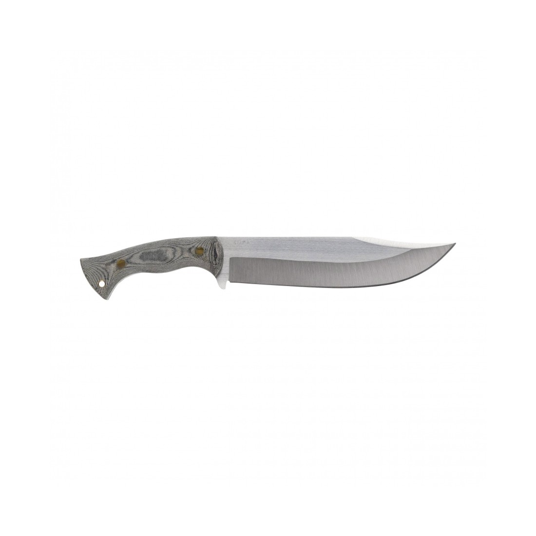 Anatomicznie ukształtowaną rękojeść wykonano z czarnej mikarty, czyli z juty prasowanej pod ciśnieniem z żywicą syntetyczną. Dzięki temu rękojeść doskonale leży w dłoni, jest wytrzymała oraz odporna na wilgoć. Mosiężne nity trzymają całość razem.