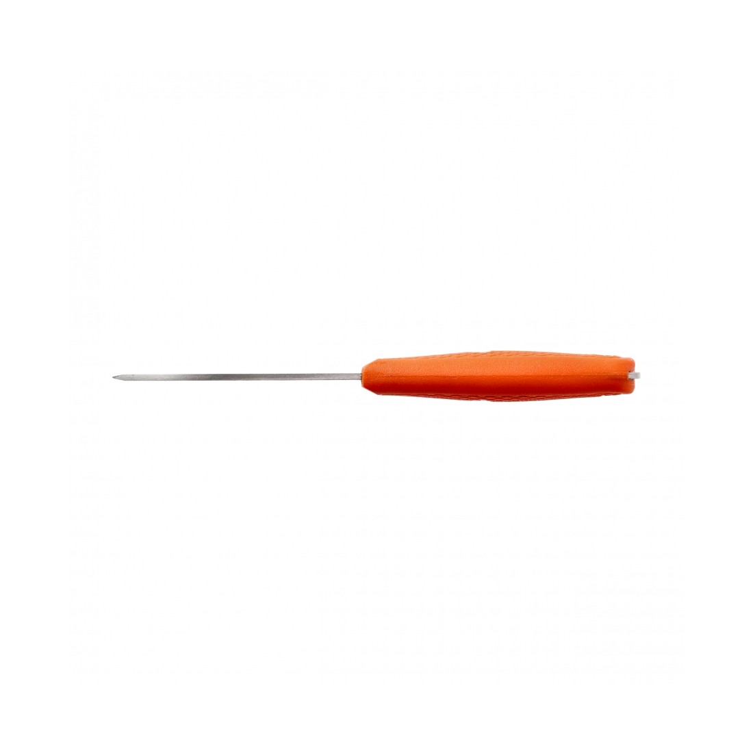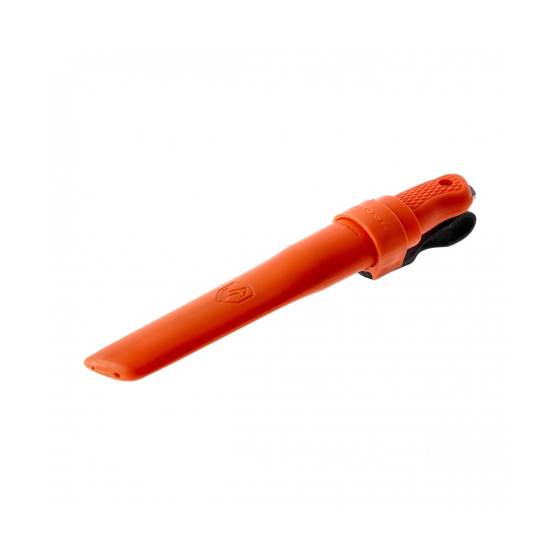 Profilowana rękojeść z polipropylenu dobrze leży w dłoni i nie ślizga się nawet podczas pracy w rękawicach lub wilgotnych warunkach. Otwór na końcu chwytu umożliwia zamocowanie linki zabezpieczającej. W zestawie znajduje się trwała polimerowa pochewka z szeroką szlufką, która pozwala wygodnie nosić nóż przy pasie podczas wędrówek i aktywności outdoorowych.