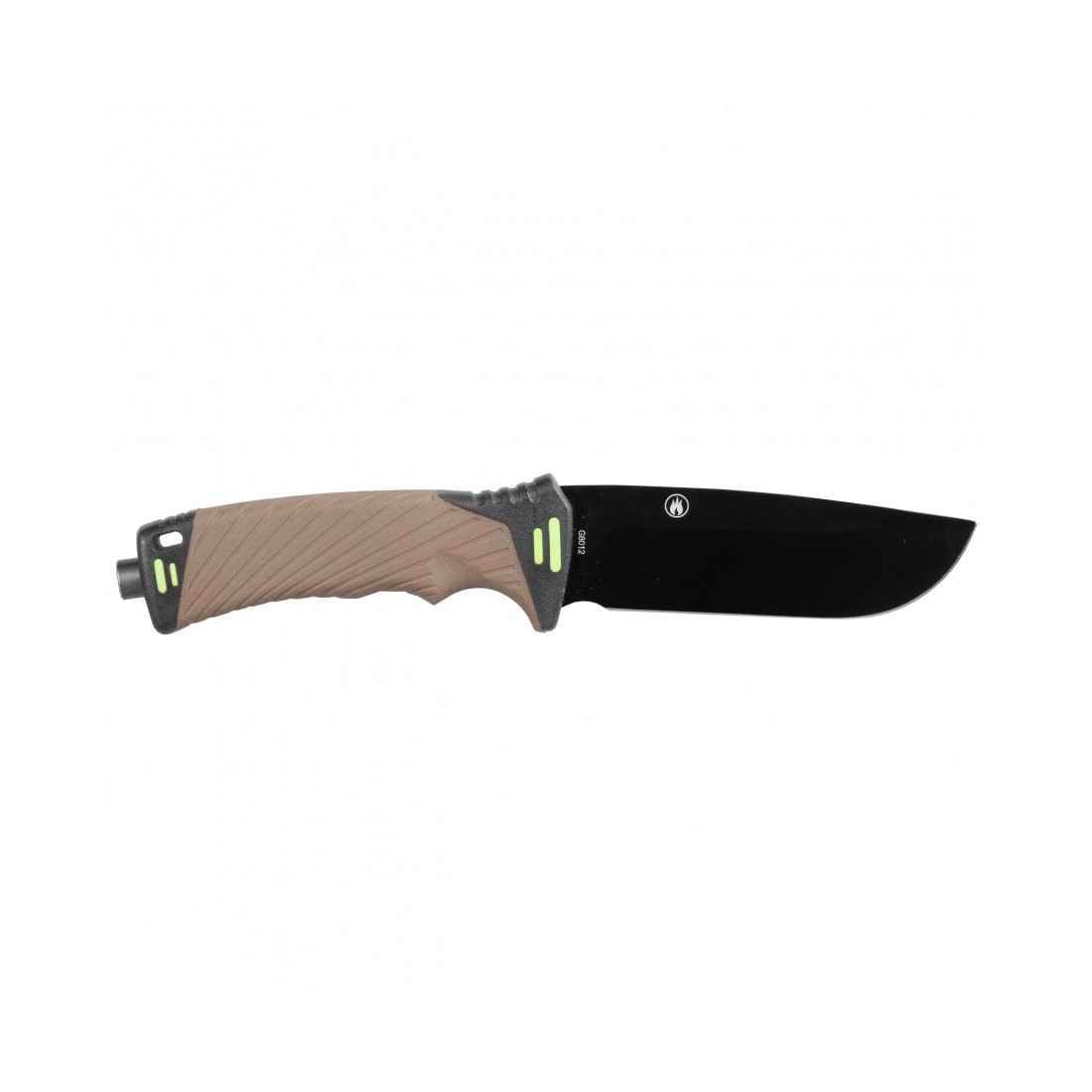 Stal nierdzewna 440 w połączeniu z klingą full tang o grubości 5 mm jasno definiują do czego został stworzony nowy nóż Ganzo. Rąbanie i "batonowanie" nie zrobią na nim wrażenia, a długa na ponad 11 cm krawędź tnąca nadaje wygody i komfortu podczas posługiwania się G8012-DY. Co ciekawe, ostrze jest w pełni wyjmowalne z rękojeści – wystarczy odkręcić tylną nakrętkę blokującą ostrze z chwytem, a sama nakrętka zaś pełni funkcję zbijaka do szyb. Warto w tym miejscu wspomnieć również o specjalnym profilu na górnej krawędzi ostrza przygotowanym pod użycie krzesiwa.