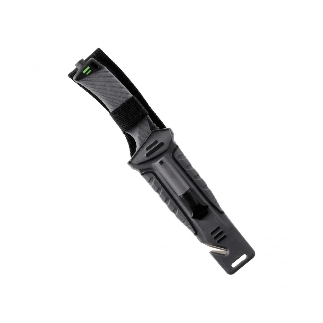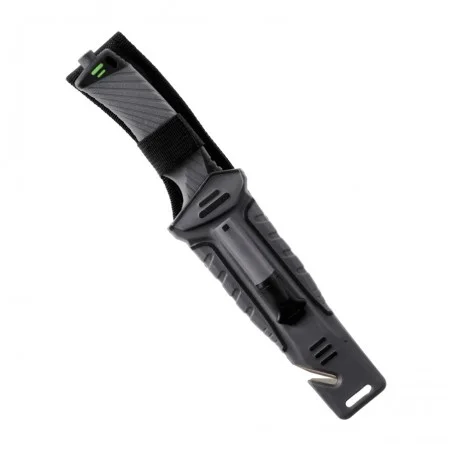 - Elementy zestawu noża: rozcinacz, ostrzałka, zbijak do szyb, krzesiwo, pochewka