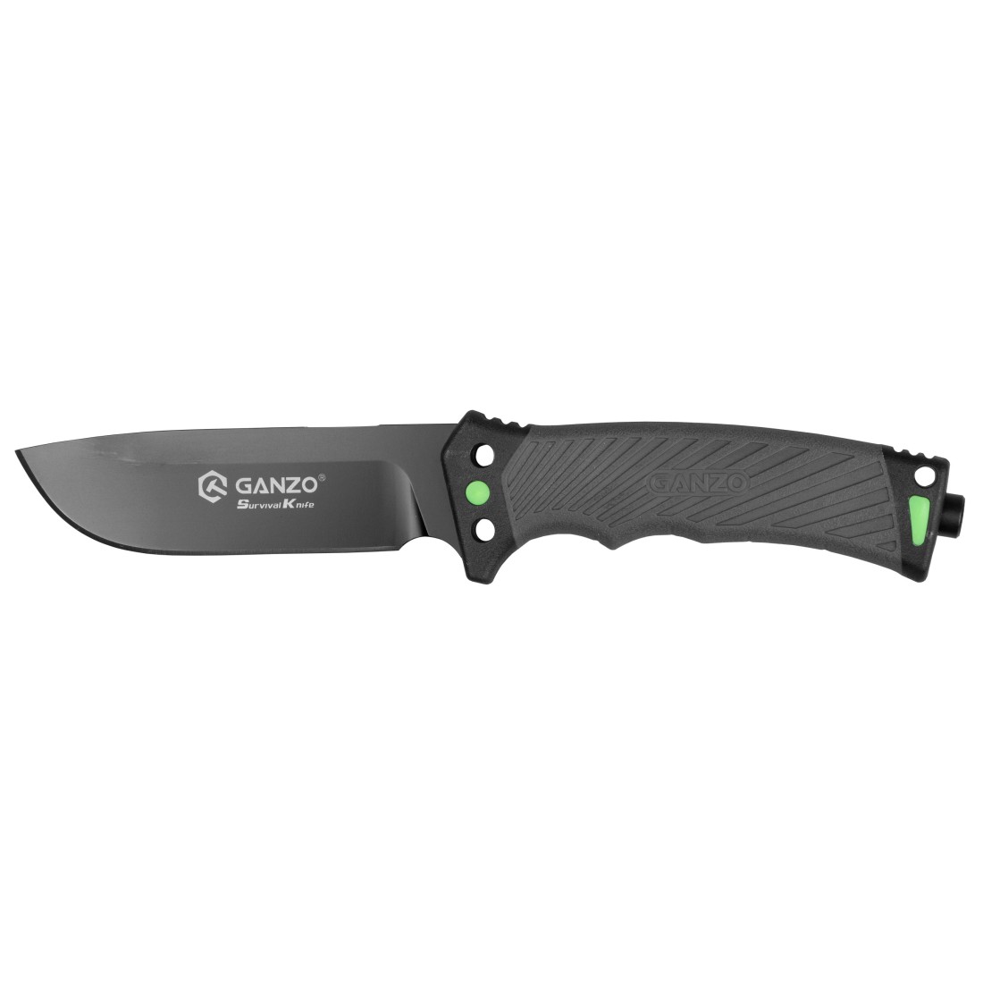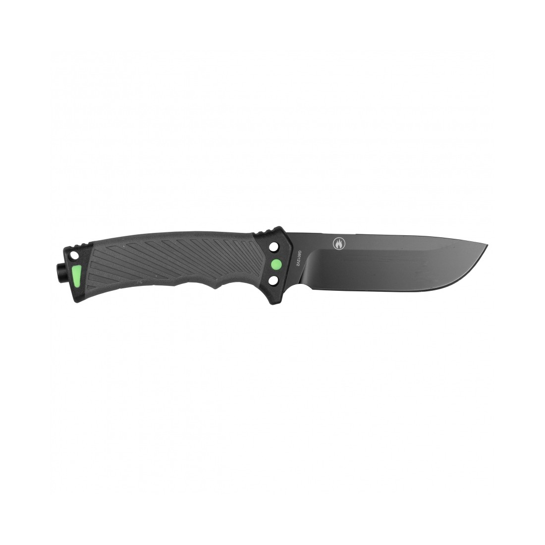 Głownia noża Ganzo G8012 została wykonana ze stali 8Cr13 charakteryzującej się wysoką odpornością na korozję. W połączeniu z możliwością łatwego naostrzenia sprawia to, że model doskonale sprawdzi się w roli noża survivalowego. Uniwersalny profil głowni typu drop point z wydatnym brzuchem gwarantuje nożowi dobre właściwością tnące. Dla wyeliminowania odblasków głownia została pokryta czarną powłoką, dodatkowo uodporniająca nóż na rdzewienie. Możemy jednak zauważyć, że pewien obszar grzbietu pozostał odsłonięty - jest to podcięcie, które umożliwi nam wygodne korzystanie z krzesiwa.