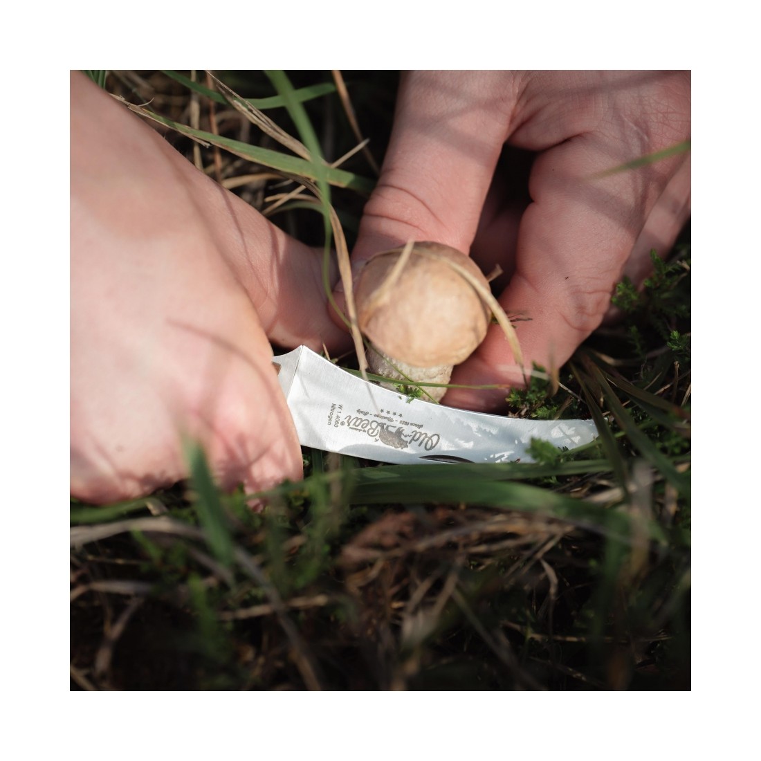 Antonini Old Bear Mushroom to składany nóż zaprojektowany specjalnie z myślą o miłośnikach grzybobrania. Łączy tradycyjne włoskie rzemiosło z funkcjonalnymi rozwiązaniami, które sprawiają, że zbieranie grzybów jest wygodniejsze i bardziej precyzyjne. Wyposażony w ostrze typu Hawkbill ze stali nierdzewnej AISI 420, gwarantuje czyste i dokładne cięcie, a satynowe wykończenie dodaje mu elegancji.