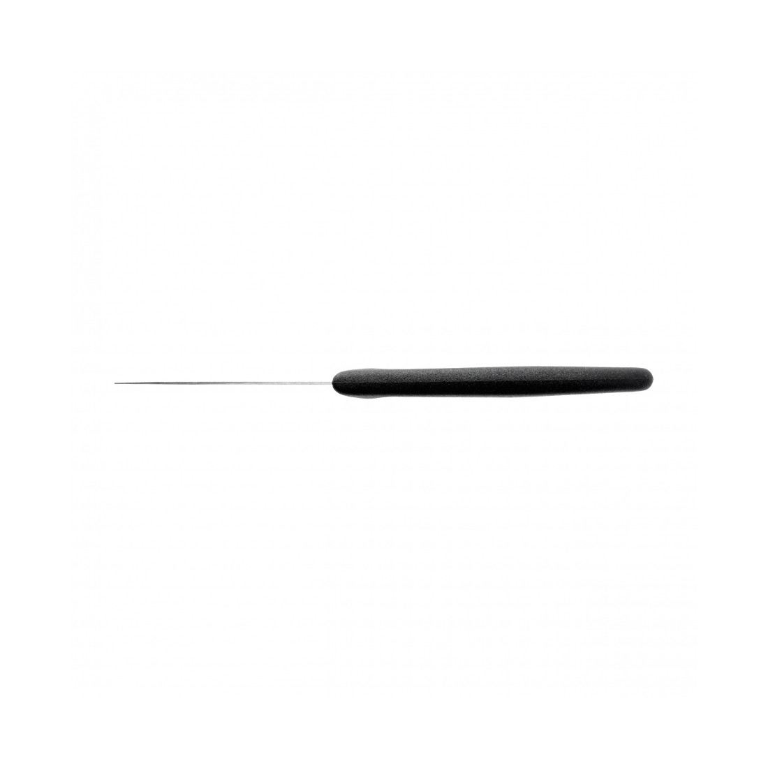 Nóż do pomidorów z ząbkami Victorinox posiada długą na jedenaście centymetrów głownię. Jej ząbkowane ostrze pokroi nie tylko miękkie warzywa, ale sprawdzi się doskonale także przy krojeniu pieczywa. Cięcia nie uszkodzą krojonych produktów i pozostawią eleganckie, równe brzegi. Warto wspomnieć, że czubek noża zaokrąglono, dzięki czemu przypadkowe skaleczenie jest mniej prawdopodobne. Czyni to z Victorinoxa narzędzie bardzo bezpieczne.