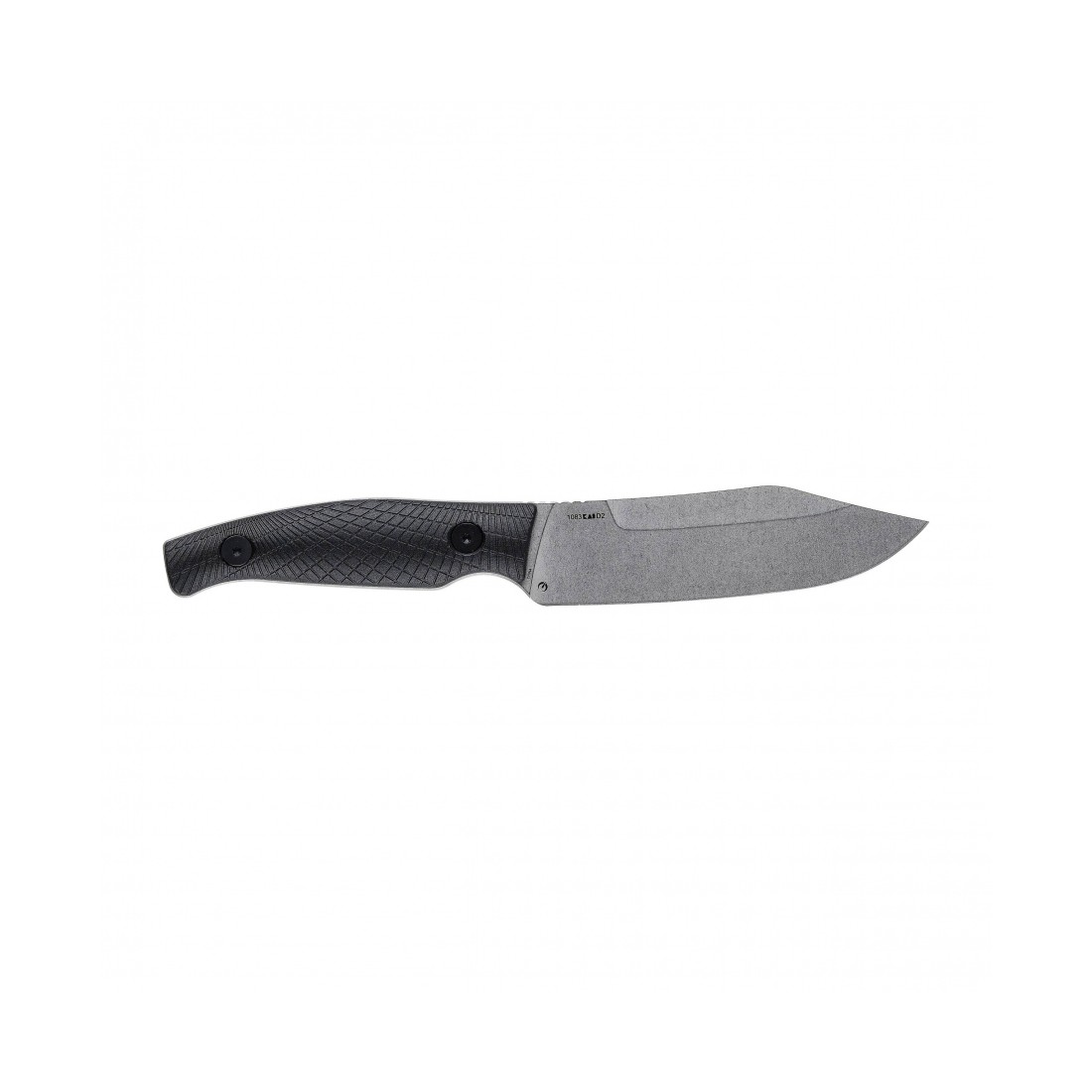 Masywna głownia o profilu Clip Point, długości 122 mm i imponującej grubości 5 mm, doskonale radzi sobie zarówno z precyzyjnym cięciem, jak i cięższymi zadaniami, takimi jak rozłupywanie drewna. Wysokie frezy na grzbiecie zapewniają pewne oparcie dla kciuka, co zwiększa kontrolę nad ostrzem. Wykończenie stonewashed maskuje ślady użytkowania i nadaje nożowi praktyczny, terenowy charakter.