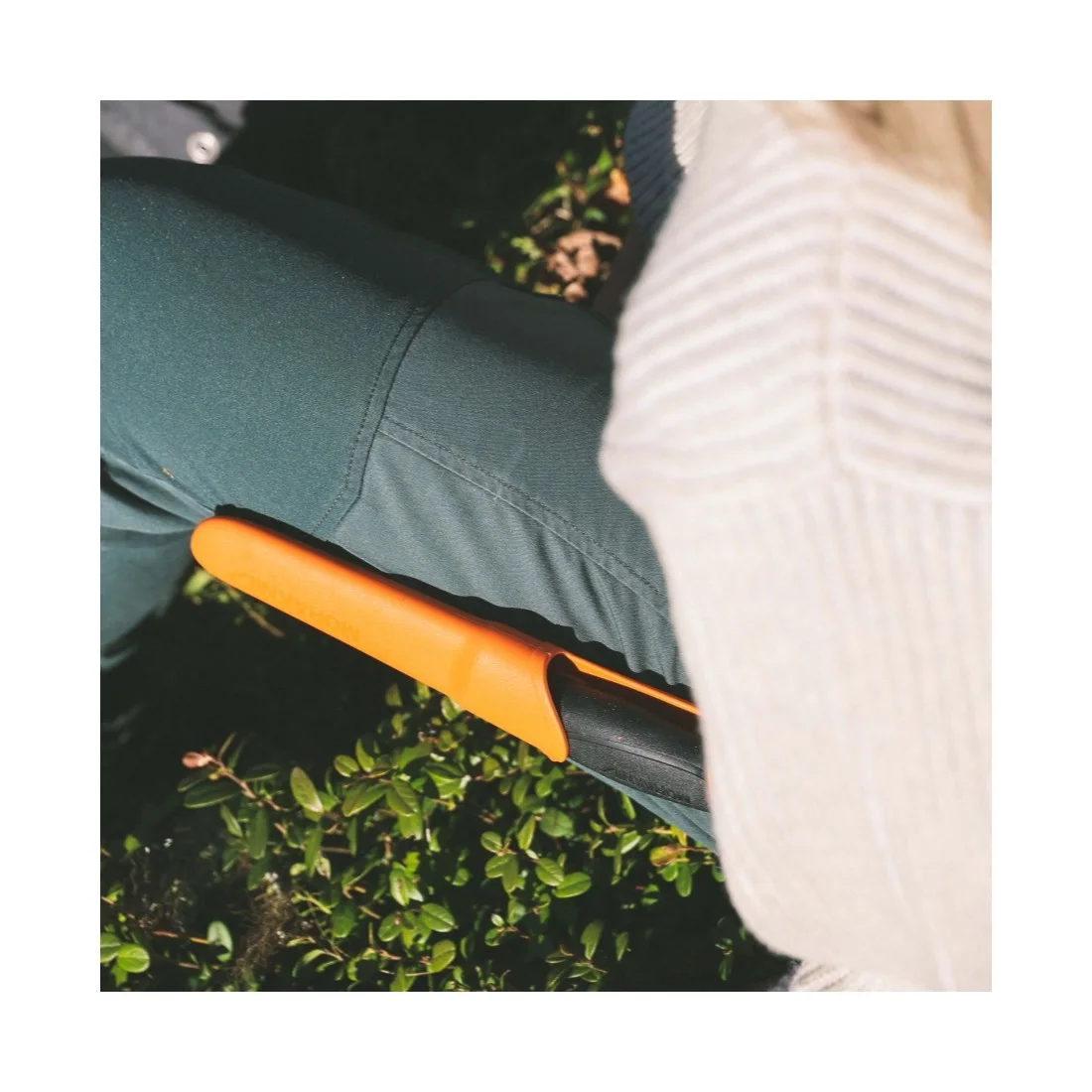 Szlif typu scandi bez oddzielnej krawędzi tnącej zapewnia doskonałą wytrzymałość, a zastosowana stal Sandvik 12C27 charakteryzuje się niezwykle wysoką nierdzewnością, przez co nóż jest praktycznie bezobsługowy pod kątem konserwacji. Przemyślana polimerowa pochewka z otworem drenującym nie zatrzymuje wody, a dzięki pozbawionej obecności tkaniny czy skóry jest niezwykle łatwa w czyszczeniu, przez co nie zaszkodzi jej chwilowe przechowanie brudnego od żywicy czy resztek żywności noża.