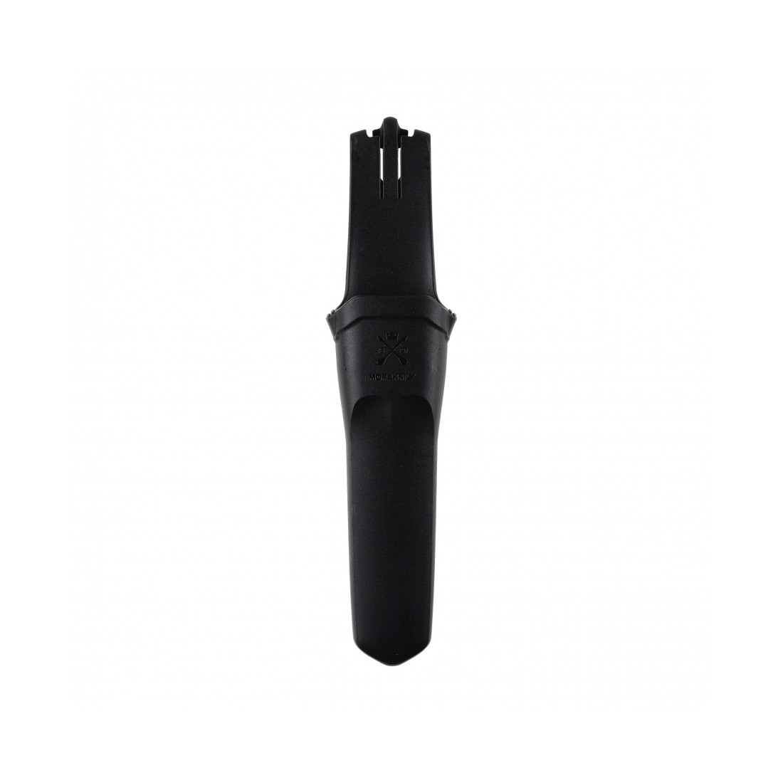 W zestawie znajduje się lekka pochewka z polipropylenu wyposażona w system click-lock, który pewnie blokuje nóż i zapobiega jego przypadkowemu wysunięciu podczas marszu lub pracy w terenie.