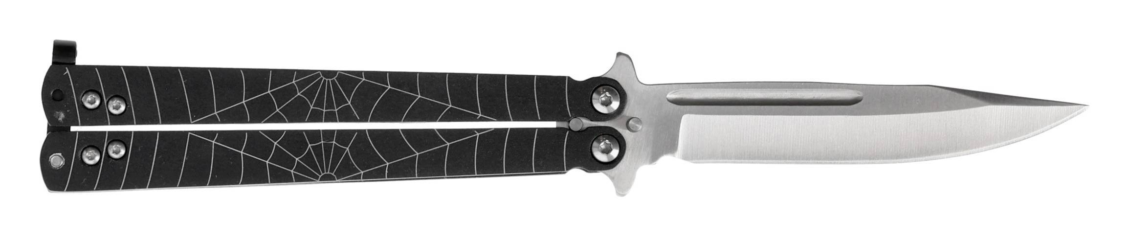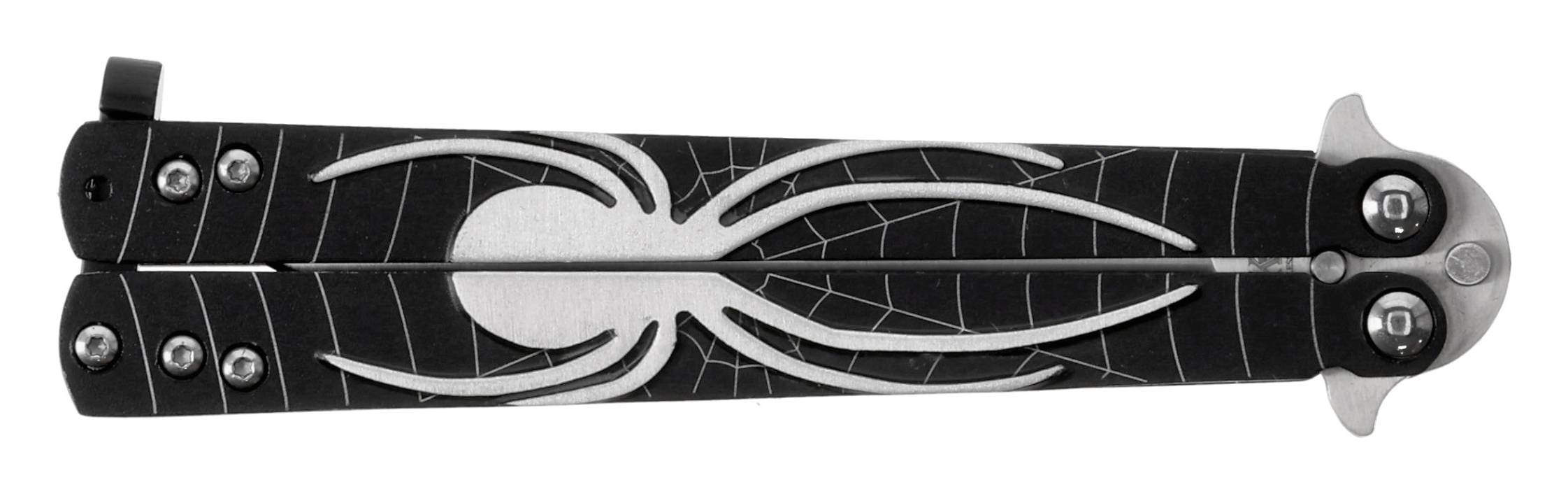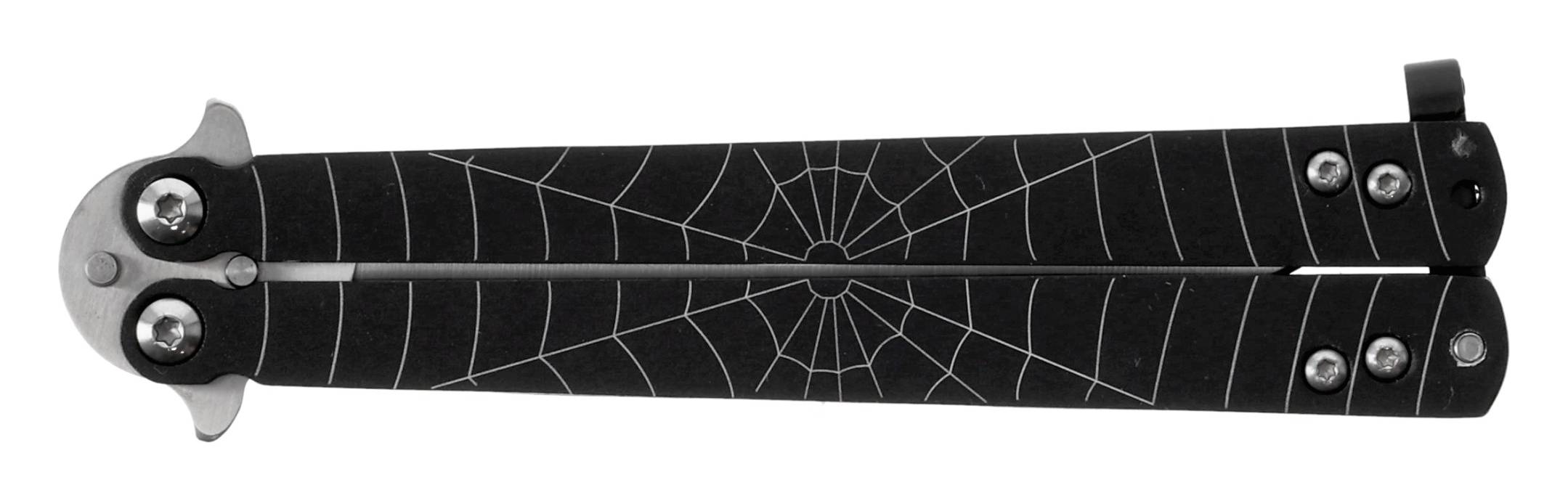 Aluminiowe rękojeści sprawiają, że nóż jest lekki i dobrze wyważony, co ma duże znaczenie podczas wykonywania trików. Efektowny motyw pająka nadaje modelowi nowoczesny, charakterystyczny wygląd.
