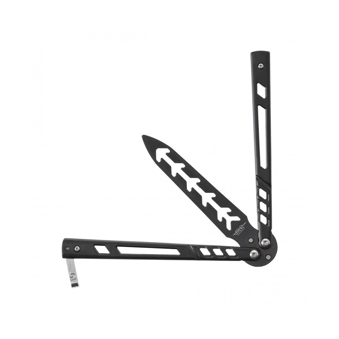 Joker JKR704 to wysokiej jakości treningowy nóż motylkowy (balisong), stworzony z myślą o osobach, które chcą w bezpieczny sposób opanować sztukę posługiwania się nożem tego typu. Wyposażony w klingę pozbawioną ostrej krawędzi tnącej oraz tępy sztych, zapewnia maksymalne bezpieczeństwo podczas treningu. Dzięki temu świetnie sprawdza się zarówno przy nauce trików i efektownych ewolucji, jak i podczas ćwiczeń samoobrony czy symulacji walki nożem.