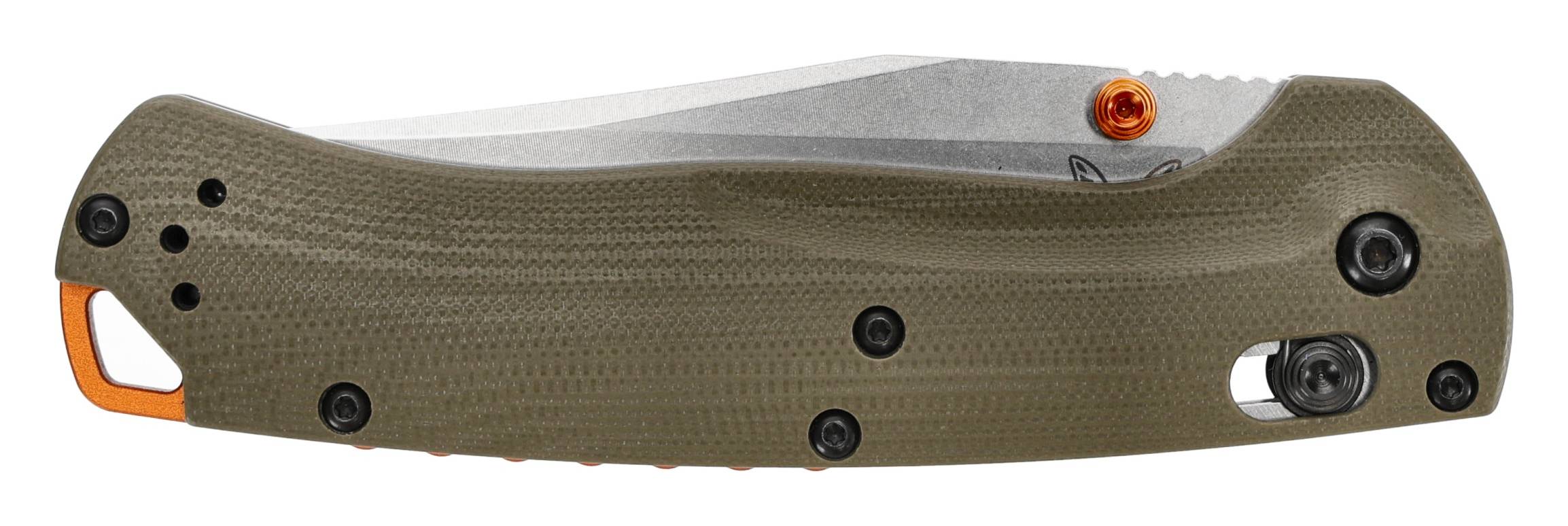 Ostrze noża Taggedout można wygodnie rozłożyć jedną ręką za pomocą dużego otworu w głowni, umożliwiając tym samym komfortową obsługę noża osobom prawo i leworęcznym oraz w rękawicach. Blokada głowni to oczywiście Axis Lock, flagowy mechanizm marki Benchmade, ceniony za ogromną odporność na obciążenia, niewrażliwość na zabrudzenie oraz komfort użytkowania.