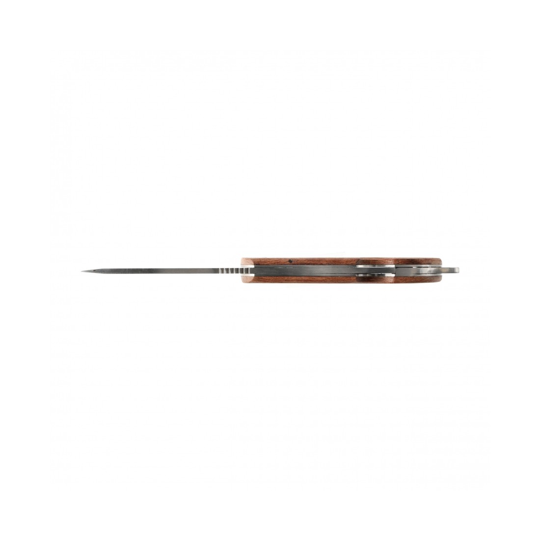 Okładziny chwytu noża są wykonane z drewna. Naniesiono na nie teksturowanie przeciwpoślizgowe. Nadaje to narzędziu unikalny charakter.
