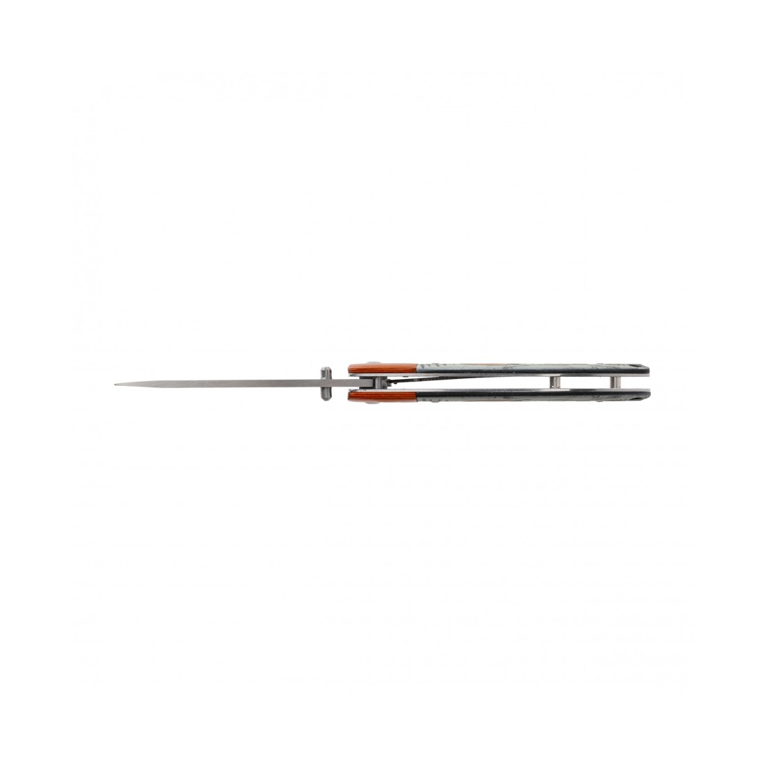 Podcięcie na palec wskazujący oraz smukły kontur rękojeści ułatwiają operowanie nożem oraz zapewniają pewny chwyt. Codzienne przenoszenie noża w kieszeni umożliwia standardowy klips, montowany wyłącznie w jednej pozycji. W tylnej części noża znajduje się otwór na linkę lub rzemień.