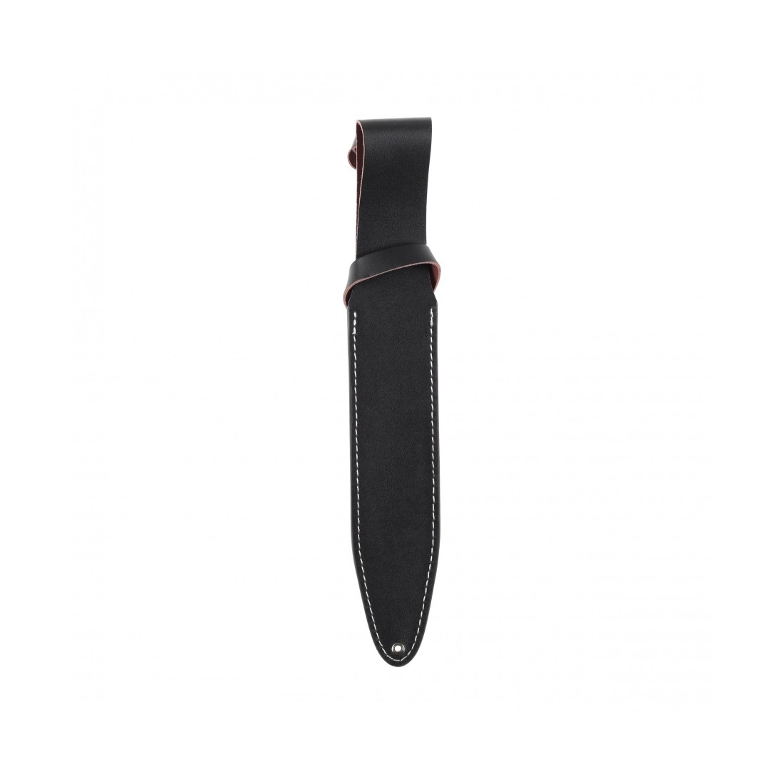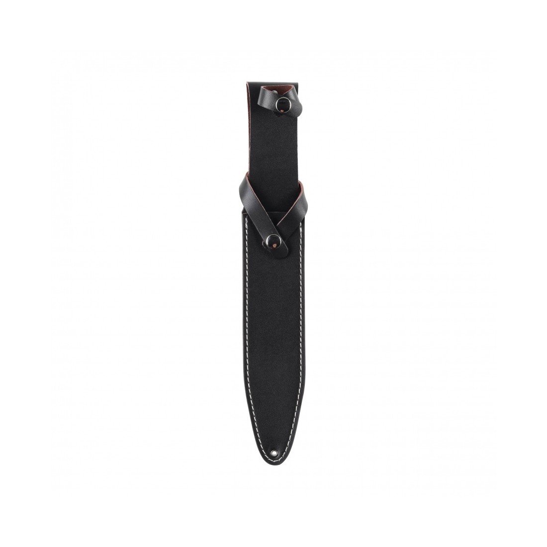 W komplecie znajduje się pochewka z naturalnej skóry, umożliwiająca bezpieczne i wygodne przenoszenie noża na pasie. Zamknięcie na metalowe napy stabilnie zabezpiecza ostrze podczas transportu.