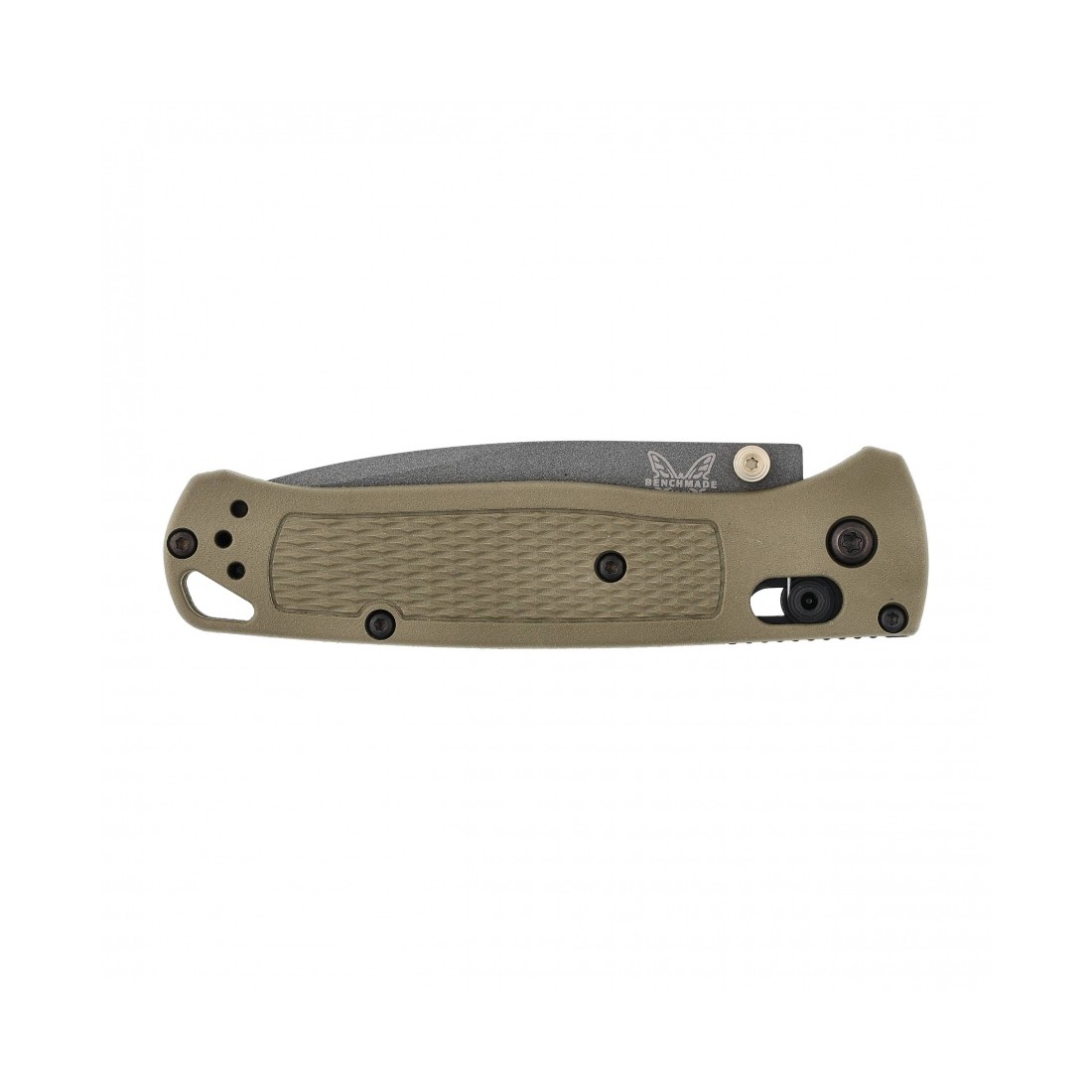 Stylistyka nowego Benchmade Bugout nieodzownie kojarzy się z nożem taktycznym, za sprawą gaszonej kolorystki okładzin i klingi. W nożu zastosowano głownię o użytkowym profilu drop-point, wykonaną ze stali nierdzewnej CPM-S30V hartowanej do 58-60 HRC. Klinga o długość 82 mm, ma optymalną wielkość i funkcjonalność, świetnie sprawdza się w codziennych zadaniach. Stal proszkowa CPM-S30V cechuje się wysoką twardością i odpornością na uszkodzenia, co zapewnia jej optymalną ostrość przez długi czas. Cała głownia została pokryta szarą powłoką azotku chromu, która ma bardzo wysoką odporność na ścieranie, chroni także dodatkowo przed korozją i utlenianiem. Ostrze można wygodnie rozłożyć jedną ręką, dzięki zastosowaniu dwustronnego kołka (z anodowanego aluminium), umożliwiając tym samym komfortową obsługę noża osobom prawo i leworęcznym. Blokada głowni to oczywiście Axis-lock, flagowy mechanizm marki Benchmade, ceniony za ogromną odporność na obciążenia, niewrażliwość na zabrudzenie oraz łatwość użytkowania.