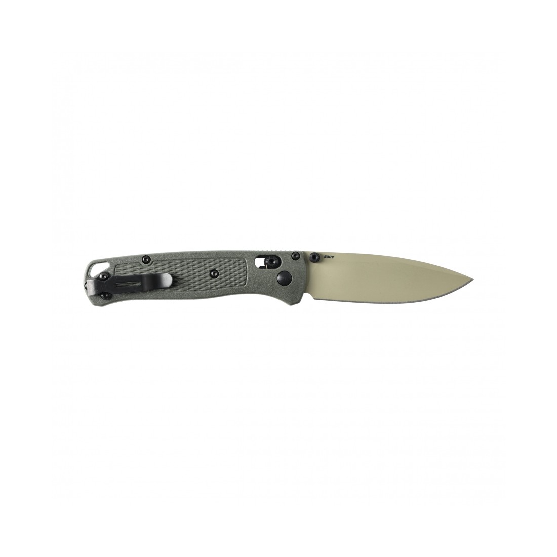 Nóż składany Benchmade 535TN-11 Bugout to jeden z najnowszych przedstawicieli noży marki Benchmade. Model ten jest niezwykle lekki (zaledwie 52 gramy) i wygodny w przenoszeniu, dzięki czemu idealnie sprawdzi się jako nóż EDC. Głownię Drop-point długości 82 mm wykonano ze stali CPM-S30V o gładkim szlifie. Stylowe wykończenie za pomocą warstwy Cerakote nadało jej charakterystycznego, miłego dla oka wyglądu. Przedstawiona wersja noża ma ryflowane okładziny w kolorze oliwkowym. Bugout to bardzo lekki i wydajny nóż, stworzony w celu zapewnienia najwyższej wygody i funkcjonalności.