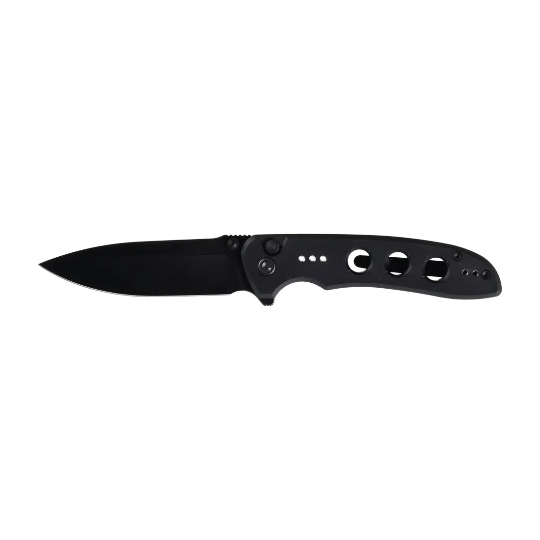 - Ergonomiczna rękojeść z aluminium: Profilowana rękojeść została wyposażona w lekkie i wytrzymałe aluminiowe okładziny. W celu zredukowania masy noża, w rękojeści wycięto otwory w okładzinach — folder wazy jedynie 85 g.