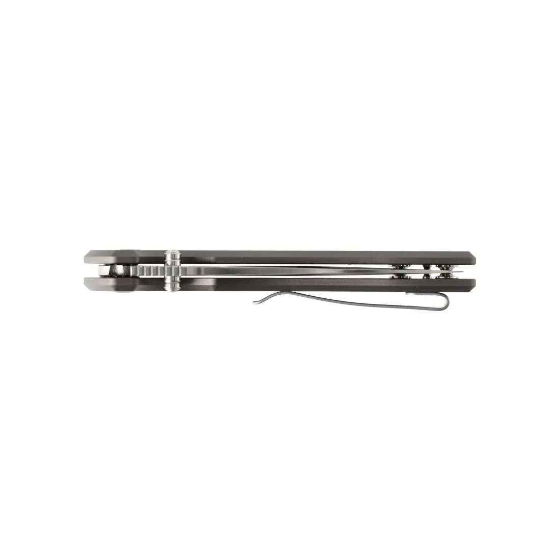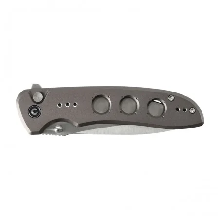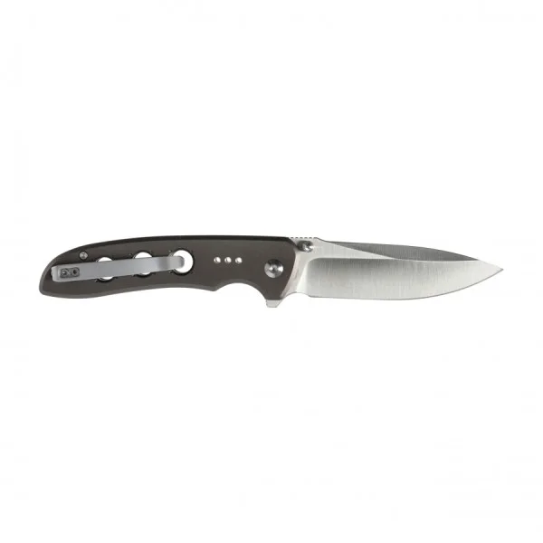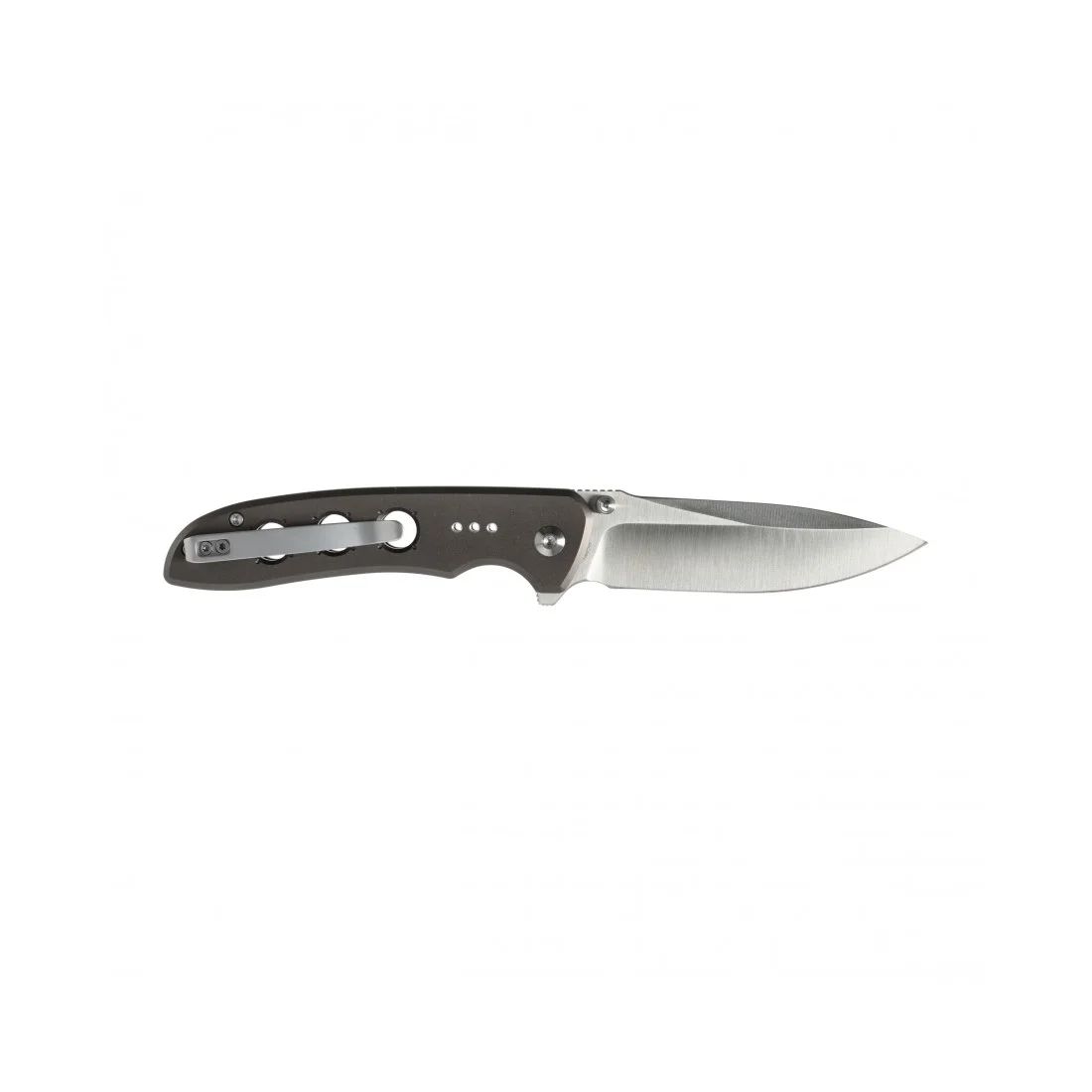 - Ergonomiczna rękojeść z aluminium: Profilowana rękojeść została wyposażona w lekkie i wytrzymałe aluminiowe okładziny. W celu zredukowania masy noża, w rękojeści wycięto otwory w okładzinach — folder wazy jedynie 85 g.