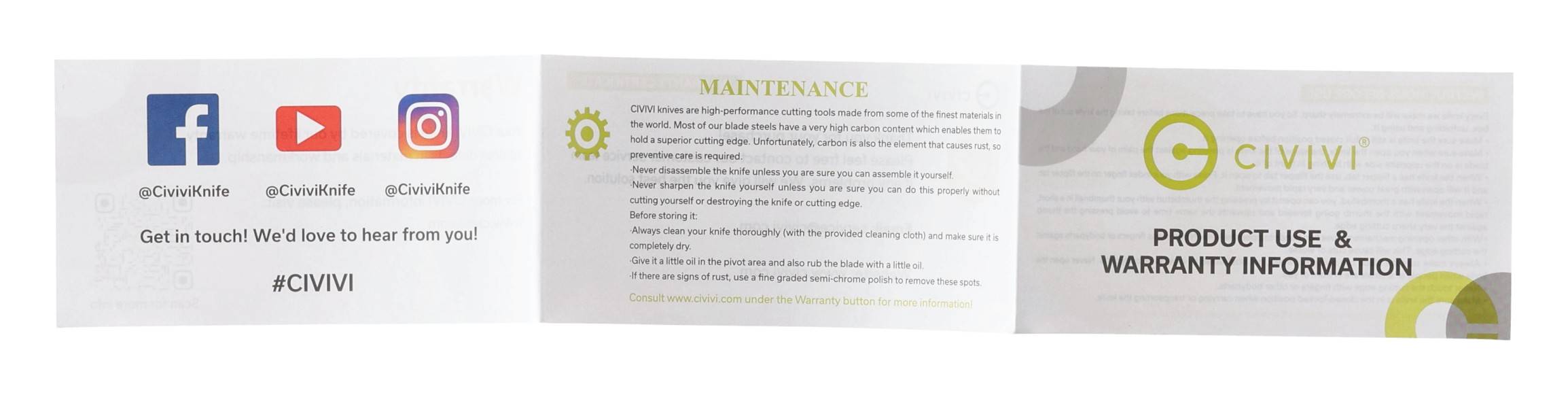 - Mechanizm Double Detent Slip-Joint: „no lock” mechanizm nieblokujący, jego konstrukcja przytrzymuje klingę w pozycji otwartej poprzez nacisk sprężyny na płaską sekcję z tyłu trzpienia ostrza w trakcie pracy. Mechanizm utrzymuje ostrze w pozycji otwartej i zamkniętej.