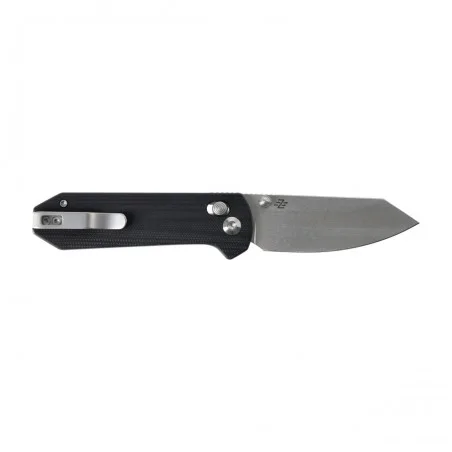 - Ergonomiczna rękojeść z G10: Wykonana z czarnego laminatu G-10, rękojeść jest lekka i wytrzymała, zapewniając pewny chwyt, nawet w trudnych warunkach atmosferycznych. Jej niewielka grubość (11,6 mm) sprawia, że nóż jest wygodny w codziennym noszeniu.