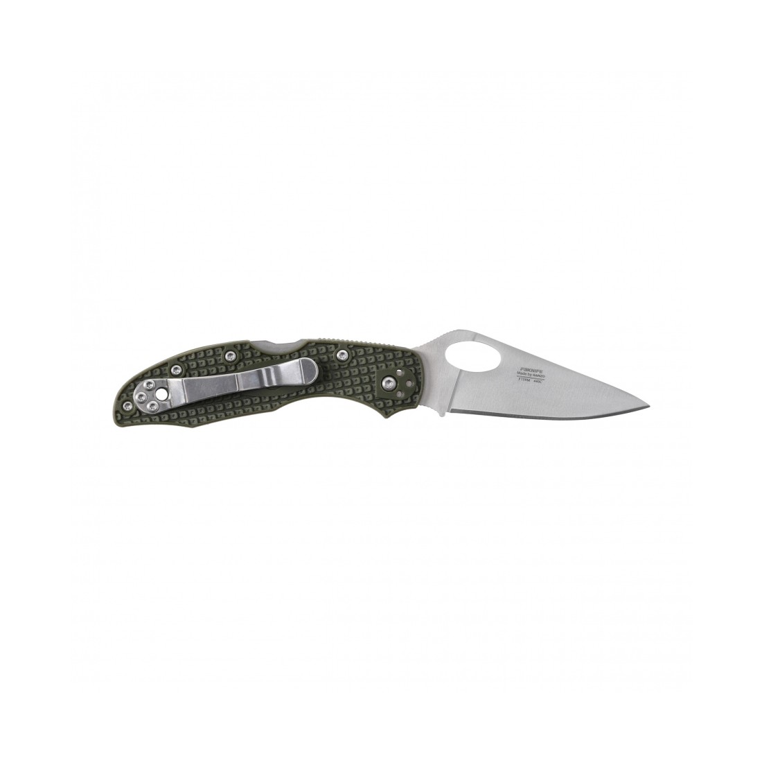 Rękojeść noża wykonano z nylonu wzmocnionego włóknem szklanym, który cechuje się niską wagą, odpornością na uszkodzenia oraz pewnym chwytem. Teksturowana powierzchnia poprawia kontrolę nad nożem, również w mokrej lub zmarzniętej dłoni. Stalowy klips pozwala na wygodne noszenie noża w kieszeni, a możliwość montażu w czterech pozycjach (lewa/prawa, tip-up/tip-down) umożliwia pełne dopasowanie do indywidualnych preferencji. Dodatkowy otwór na linkę zwiększa funkcjonalność w codziennym użytkowaniu.