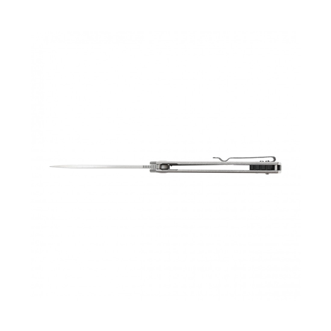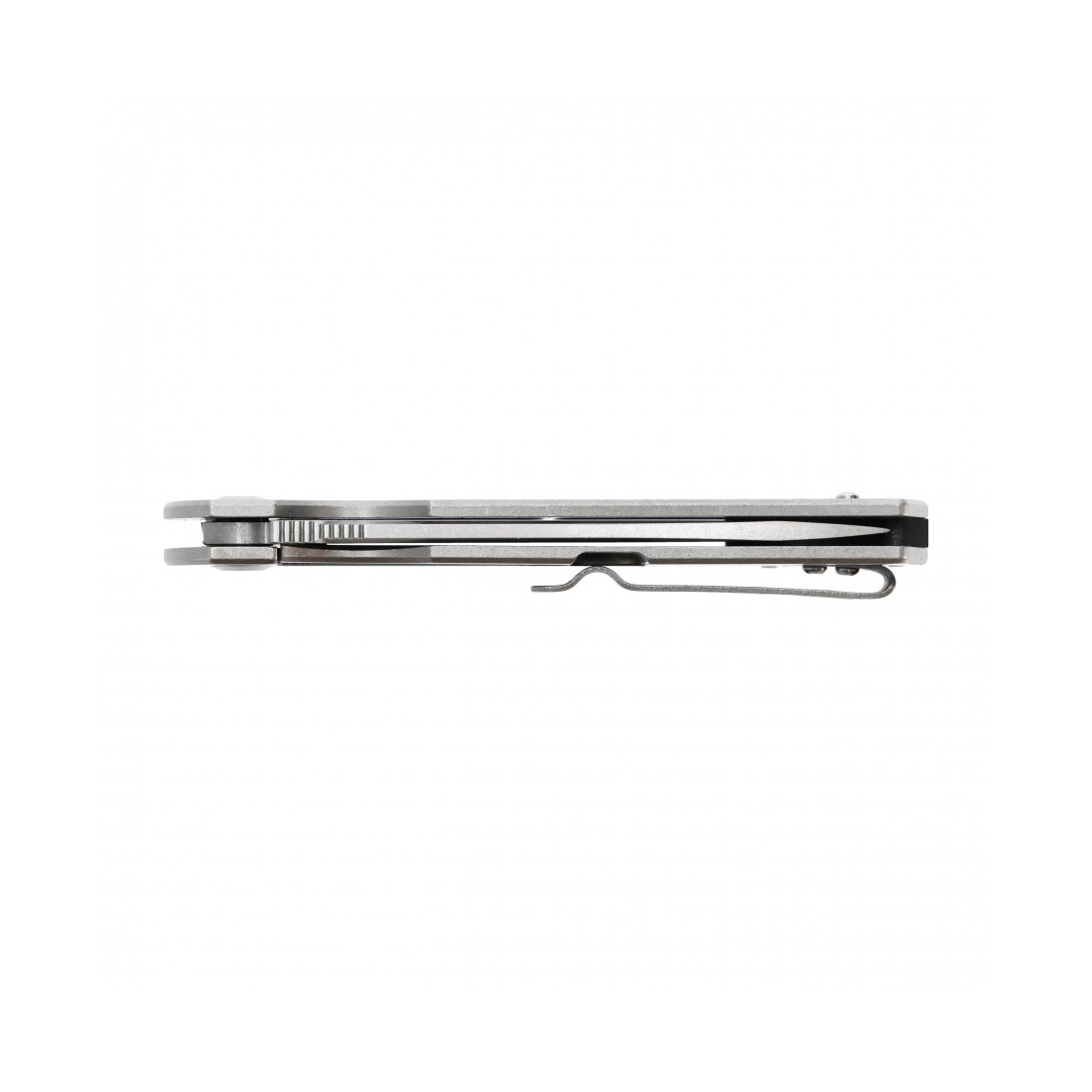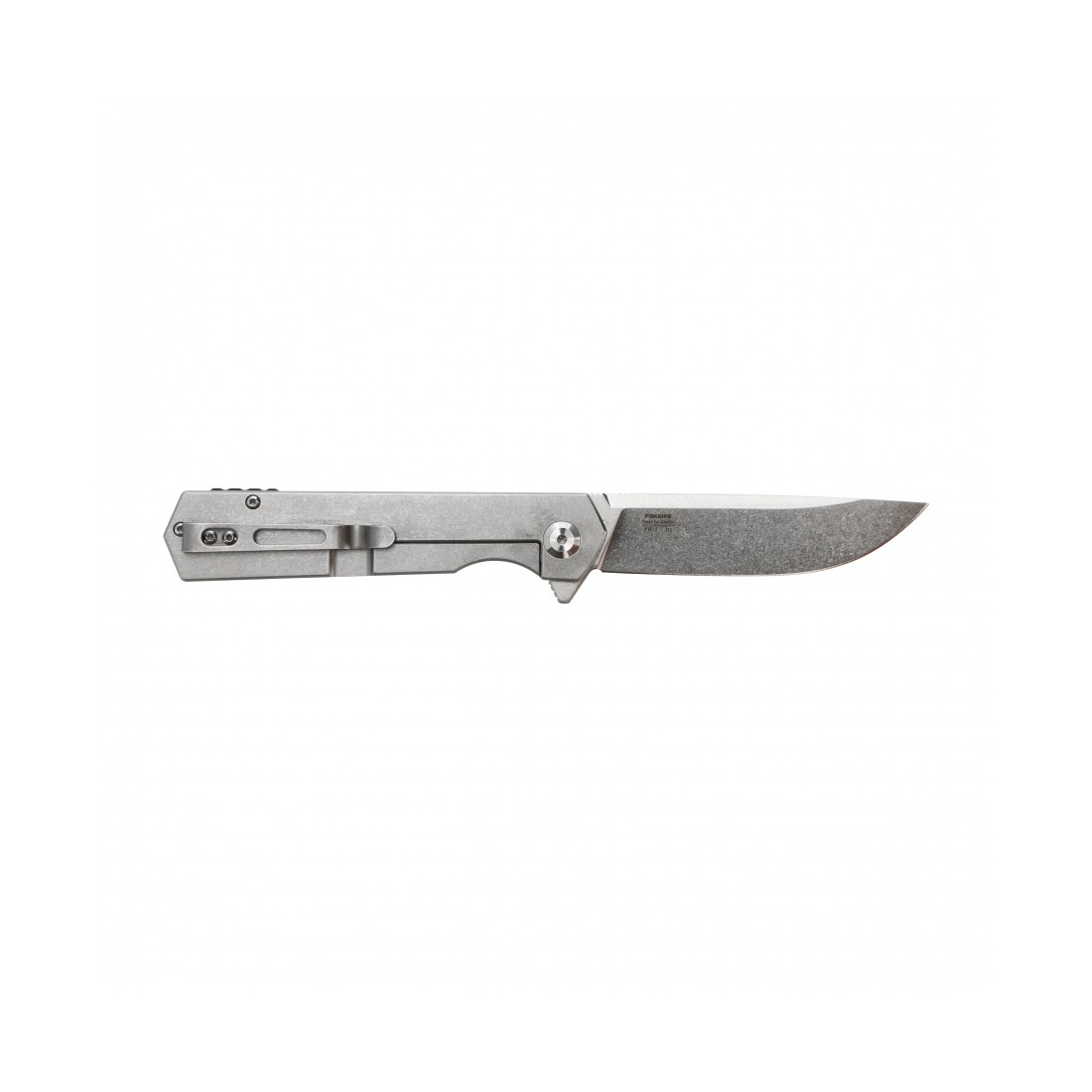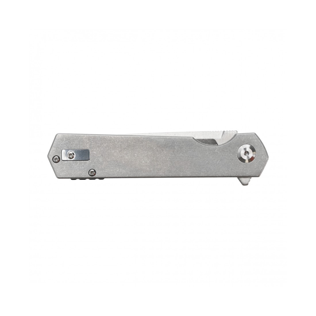 Rękojeść wykonana w całości ze stali nierdzewnej jest trwała, odporna na uszkodzenia i doskonale wyważona. Matowe wykończenie stonewashed nie tylko podkreśla surowy charakter noża, ale także skutecznie maskuje rysy powstające podczas użytkowania. Pomimo stalowej konstrukcji nóż waży jedynie 114 g, co czyni go komfortowym w codziennym noszeniu. Profilowany klips umożliwia wygodne i bezpieczne przenoszenie noża w kieszeni.