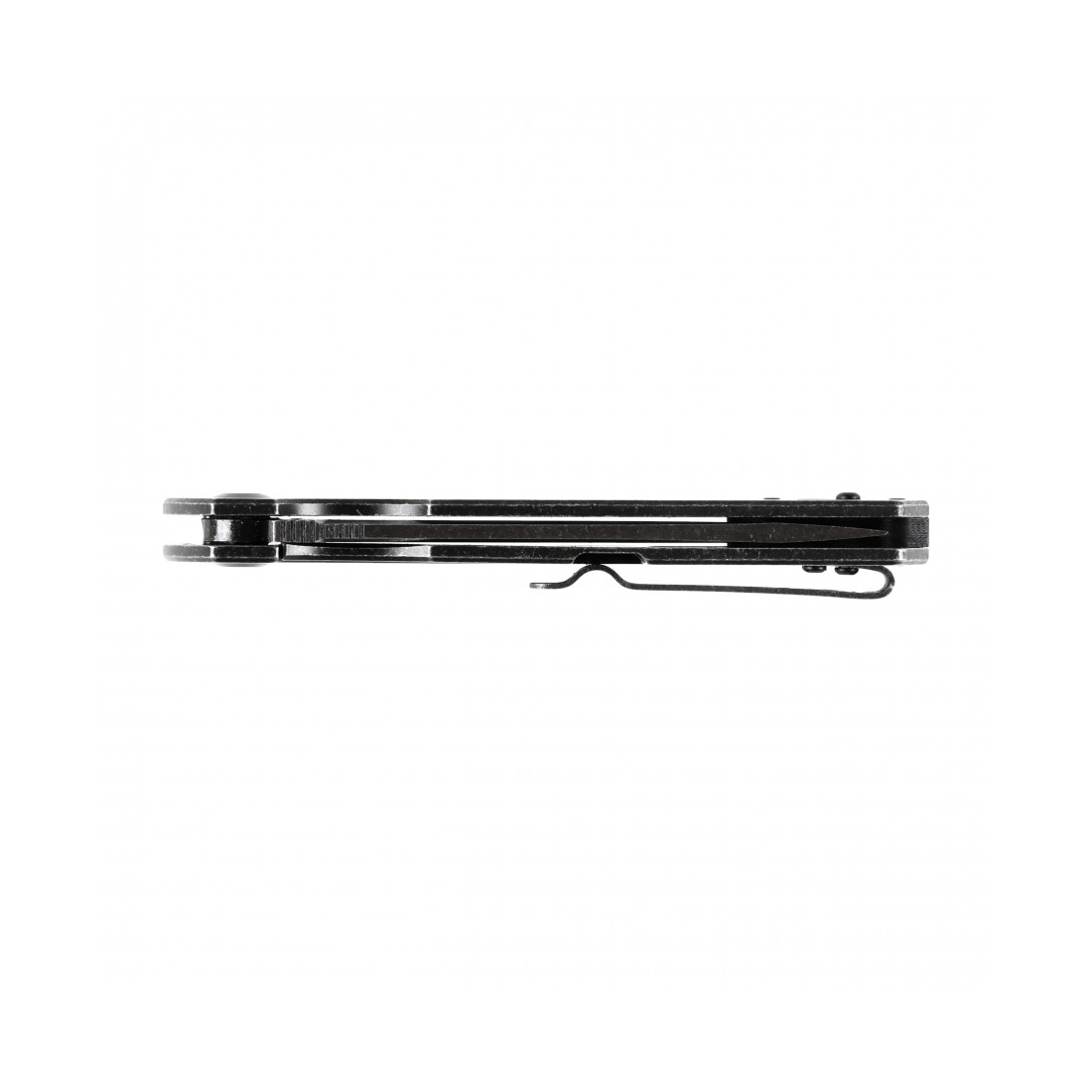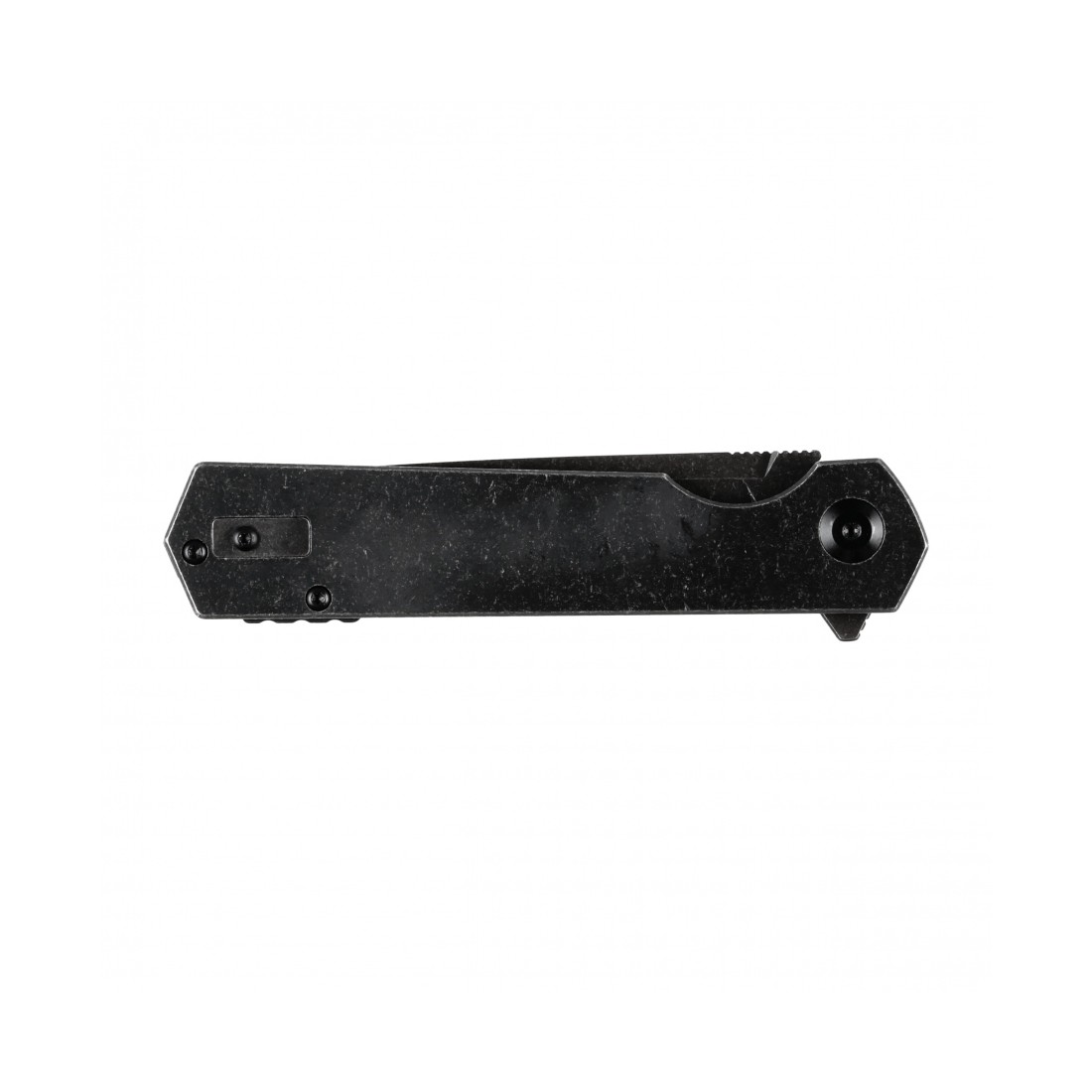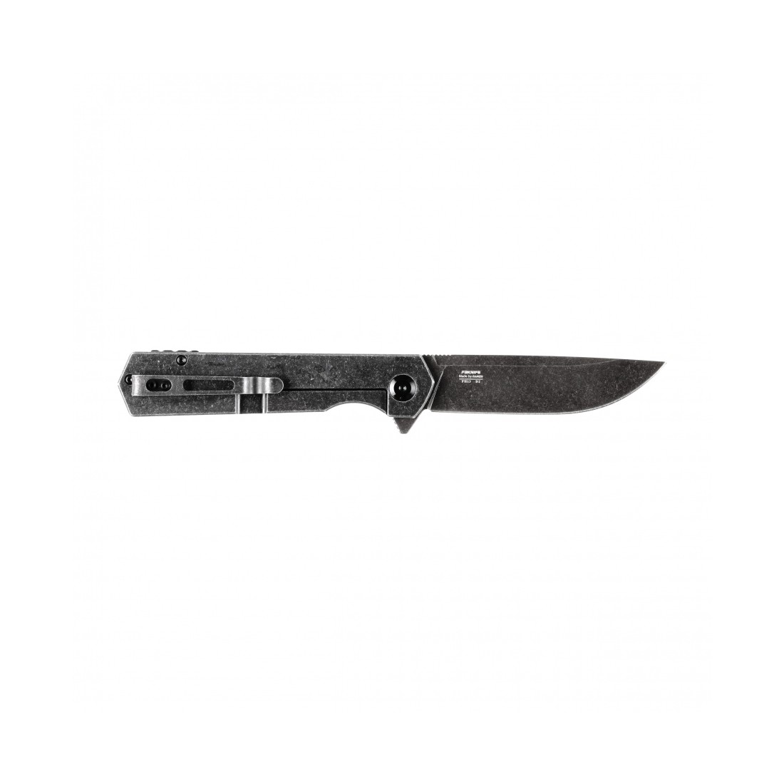 Rękojeść wykonana w całości ze stali nierdzewnej jest trwała, odporna na uszkodzenia i doskonale wyważona. Matowe wykończenie stonewashed nie tylko podkreśla surowy charakter noża, ale także skutecznie maskuje rysy powstające podczas użytkowania. Pomimo stalowej konstrukcji nóż waży jedynie 114 g, co czyni go komfortowym w codziennym noszeniu. Profilowany klips umożliwia wygodne i bezpieczne przenoszenie noża w kieszeni.