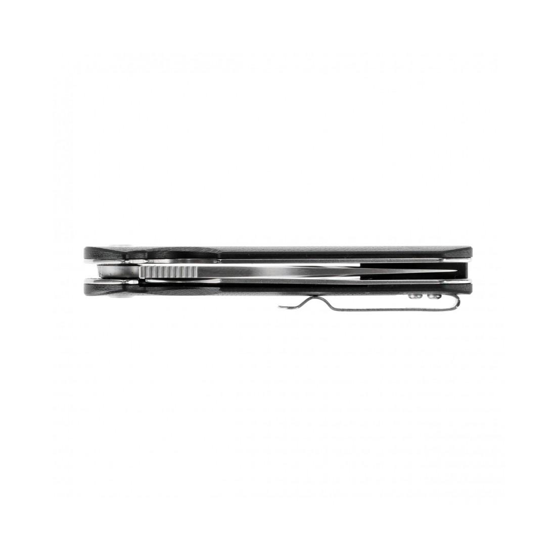 Rękojeść wykonano z lekkiego i wytrzymałego laminatu G10 w czarnym kolorze. Smukły kształt oraz ergonomiczne wyprofilowanie gwarantują pewny chwyt nawet podczas precyzyjnych zadań. Nóż waży zaledwie 72 g, dzięki czemu jest praktycznie niewyczuwalny w kieszeni. Głęboko osadzony klips typu deep carry umożliwia dyskretne i wygodne przenoszenie noża na co dzień.