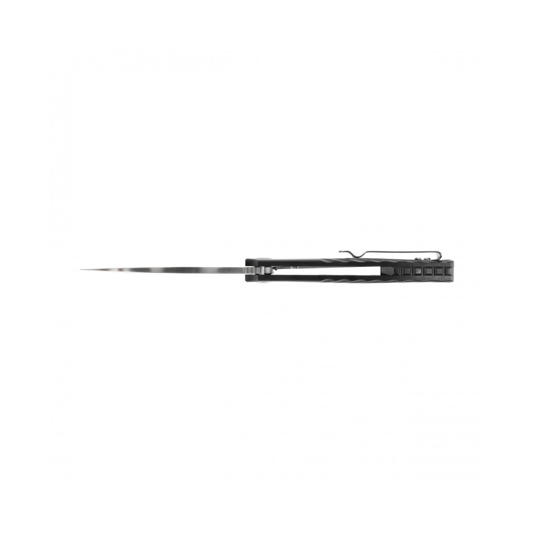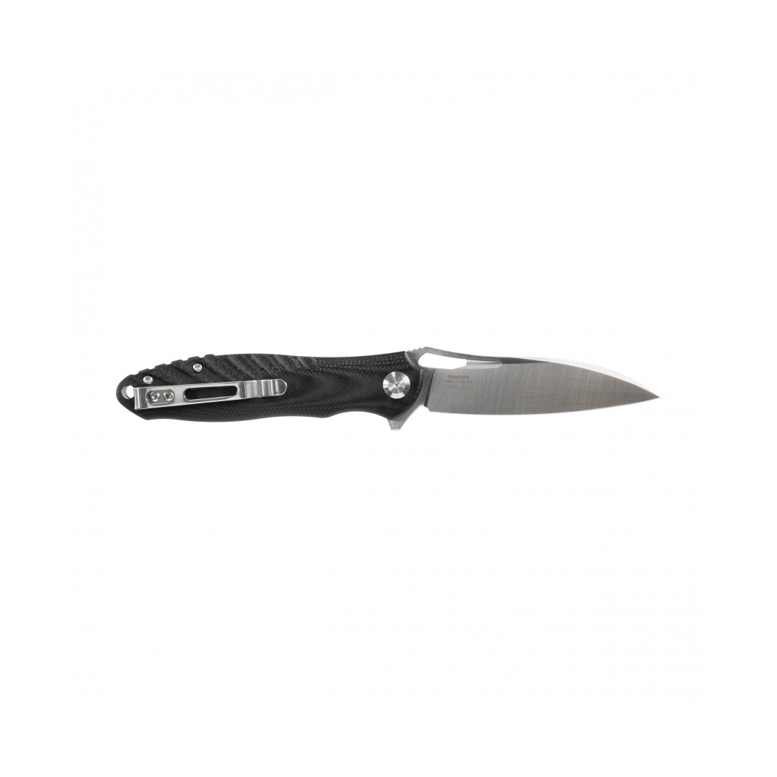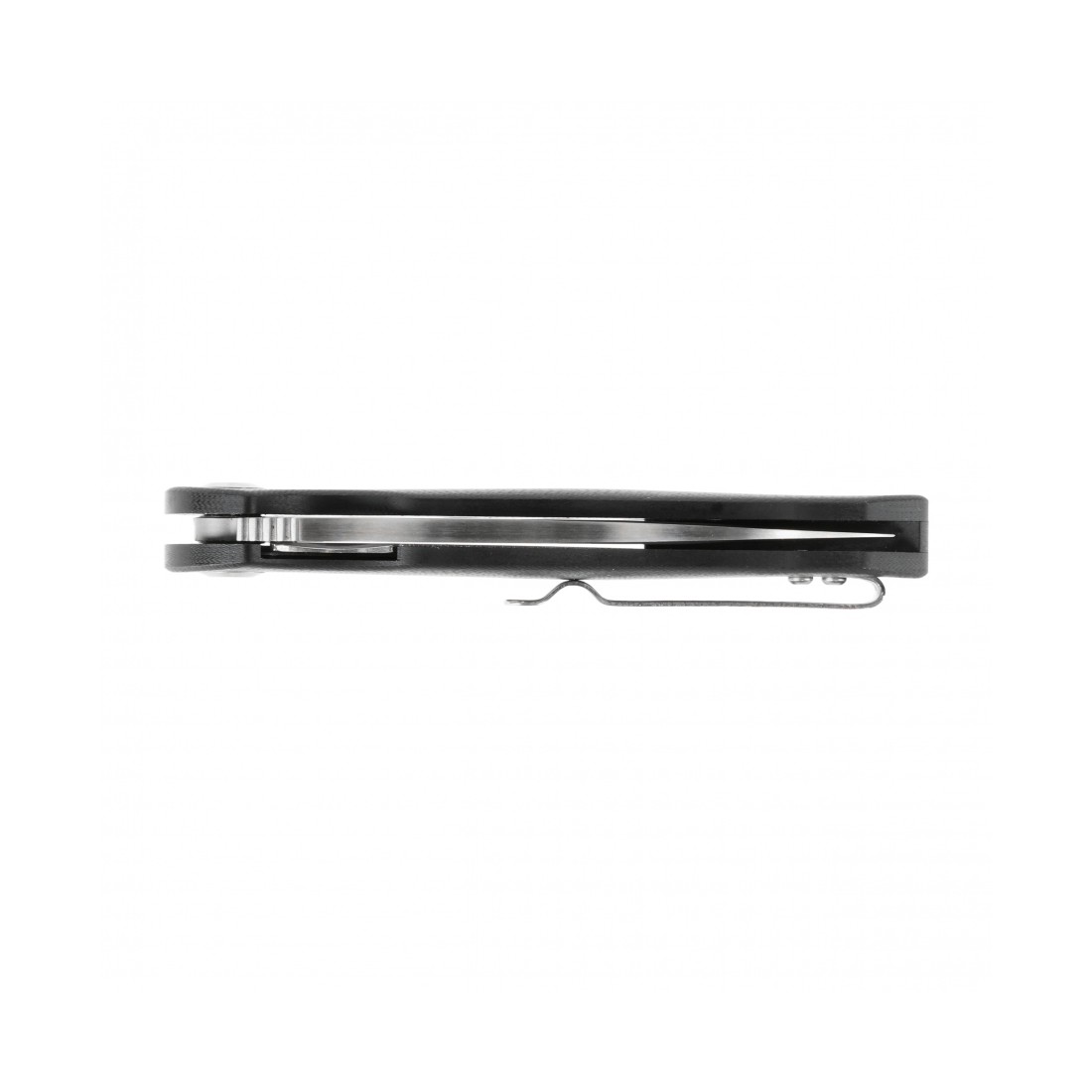 Rękojeść noża wykonano z czarnego laminatu G10, odpornego na uderzenia, wilgoć, wysoką temperaturę oraz działanie chemikaliów. Smukła forma i niska masa 98 g sprawiają, że nóż nie obciąża kieszeni i doskonale nadaje się do codziennego noszenia. Głęboko osadzony klips (deep carry) umożliwia dyskretne przenoszenie noża w kieszeni spodni.