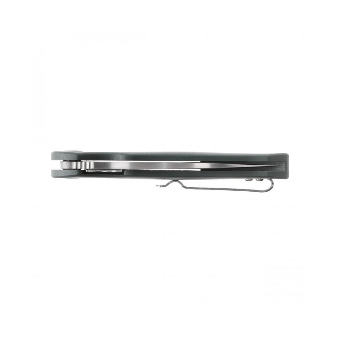 Rękojeść noża wykonano z czarnego laminatu G10, odpornego na uderzenia, wilgoć, wysoką temperaturę oraz działanie chemikaliów. Smukła forma i niska masa 98 g sprawiają, że nóż nie obciąża kieszeni i doskonale nadaje się do codziennego noszenia. Głęboko osadzony klips (deep carry) umożliwia dyskretne przenoszenie noża w kieszeni spodni.