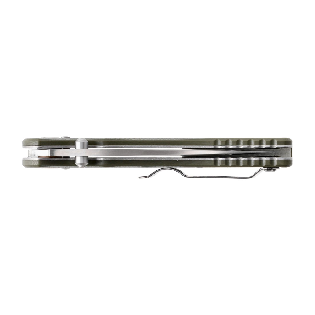 Okładziny wykonano z laminatu G10, cenionego za odporność mechaniczną i stabilność wymiarową. Szorstka faktura rękojeści poprawia chwyt, nawet gdy dłoń jest mokra lub zmarznięta.