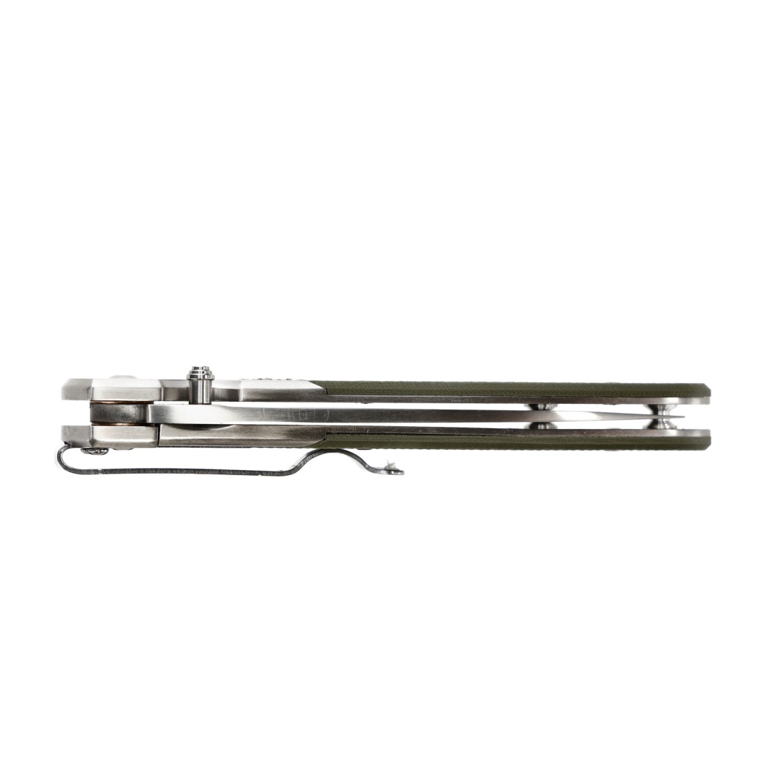 Rękojeść noża wykonano ze stalowych okładzin z nakładkami z laminatu G10, które zapewniają wysoki komfort chwytu nawet w mokrej lub zimnej dłoni. Teksturowana powierzchnia poprawia przyczepność, zwiększając kontrolę nad nożem podczas intensywnej pracy. Stalowy klips deep carry umożliwia wygodne i dyskretne noszenie noża w kieszeni.