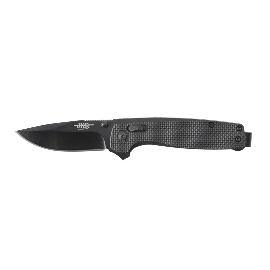 Nóż składany EDC z użytkowym ostrzem oraz wytrzymałą blokadą o bardzo dobrym stosunku jakości do ceny. Model JKR0862 ma ostrze, okładziny oraz klips w kolorze czarnym.