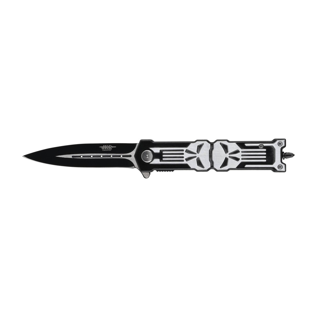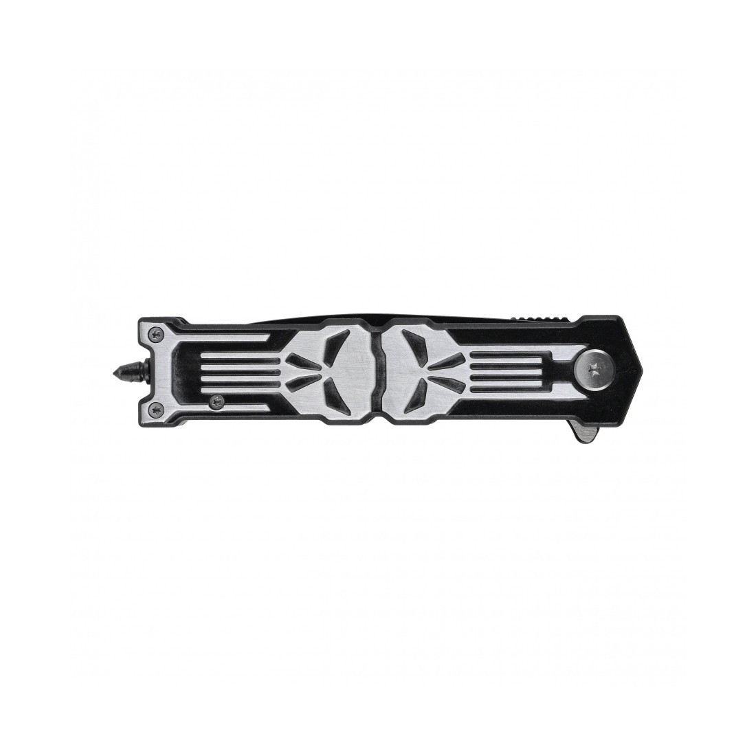 Joker JKR589 to nóż taktyczny z motywem czaszki, ze wspomaganiem rozkładania głowni oraz awaryjnym zbijakiem do szyb.