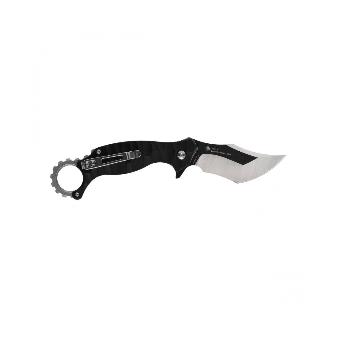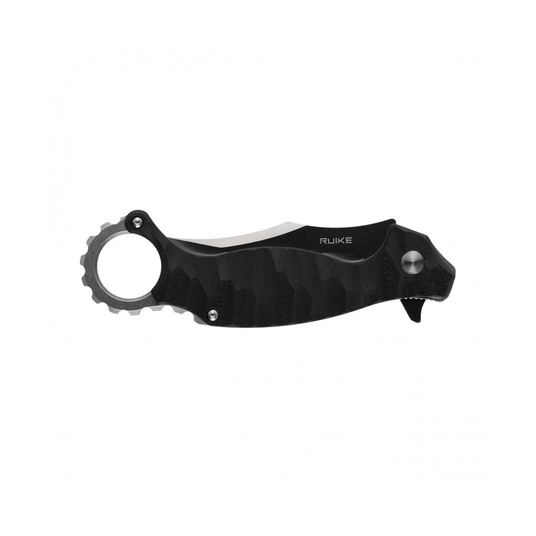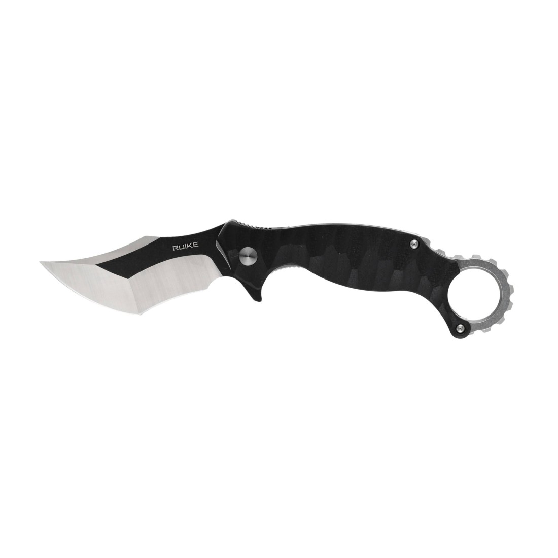 Ruike P881-B1 to składany nóż typu karambit, wyposażony w łożyskowaną głownię ze stali nierdzewnej 14C28N, rękojeść z laminatu G10, wygodny system rozkładania oraz charakterystyczny stalowy pierścień.