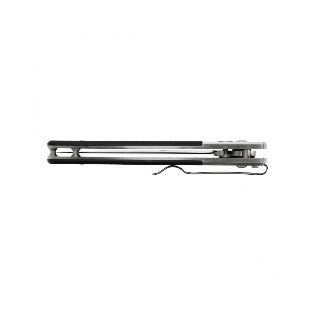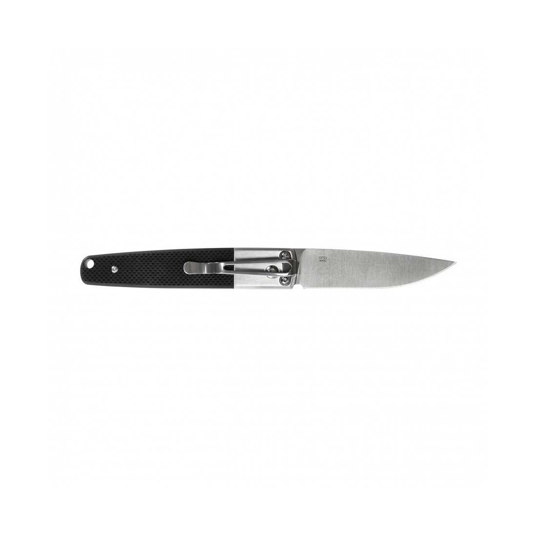 Ergonomiczna rękojeść wykonana ze stali obłożona została z jednej strony okładziną wykonaną z kompozytu G10 w kolorze czarnym. Antypoślizgowa faktura rękojeści zapewnia pewny i bezpieczny chwyt w każdych warunkach. Umieszczony na rękojeści klips pozwala na dyskretne przenoszenie noża.
