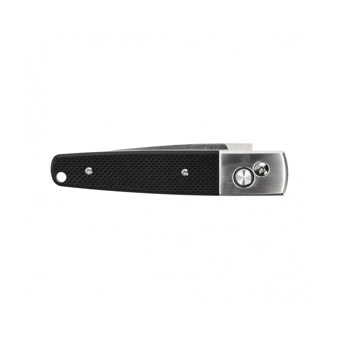 Nóż Ganzo G7211-BK to niezwykle elegancki i precyzyjnie wykonany nóż składany z możliwością szybkiego, automatycznego otwierania. Ganzo G7211-BK to średnich rozmiarów folder typu EDC. Precyzyjne ostrze z charakterystycznym i klasycznym szlifem płaskim podkreśla użytkowy klimat noża. Ostrze wykonane jest ze stali nierdzewnej typu 440C i posiada blokadę typu "button lock", która pewnie zabezpiecza je przed niekontrolowanym złożeniem. Klinga posiada wykończenie typu "satin".